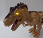 This T-Rex Dinosaur Toy is a perfect addition to your collection. It stands at 11 inches tall and has light-up eyes that enhance its appeal. It has no sound. Made of high-quality plastic, this animated dinosaur is designed to last long and provide hours of fun. Its brown color and 17 inches nose to tail length make it seem realistic, and the unmarked franchise allows you to use your creativity while playing with it. As an action figure, this T-Rex is a great gift for kids aged 3+ and can be used for imaginative play. The toy is an original licensed reproduction and is not vintage. It belongs to the Toys & Hobbies category and comes under the Action Figures & Accessories sub-category. We hope this T-Rex Dinosaur Toy becomes your favorite toy and provides a unique experience that you will never forget. Batteries not included.