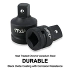 Specification: Type: Impact Adaptor Set & U-joint Swivel Socket Set Drive Size: 1/2 inch Material: CR-V Size: 3/8"F*1/4"M 1/4"F*3/8"M 3/8"F*1/2"M 1/2"F*3/8"M 1/2"F*3/4"M 3/4"F*1/2"M 3/4"F*1"M 1"F*3/4"M 1/4 " swivel sockets 3/8" swivel sockets 1/2 " swivel sockets Package includes: 8pcs Impact Adapter Socket 3pcs U-joint Swivel Socket Set 1pcs storage box 【IMPACT GRADE】 This impact adapter reducer set has a specific impact grade design that is made exclusively for drivers, wrenches and ratchets to convert size up or down for your automotive needs in the garage. 【DURABLE】 This socket adapter set is constructed of heavy duty drop forged and heat treated chrome vanadium steel for superior strength and durability to exceed and endure in all work conditions. 【DESIGN】 Spring loaded ball at the end of the bar, locks socket into place for security and prevents dropping or slippage. 【VERSATILE】 Full 360 degree motion allows U-joint swivel sockets to access complete rotation to reach tight spaces for more better coverage. 【INCLUDES】 8pcs Impact Adapter and Reducer: 3/8" to 1/4" reducer, 1/2" to 3/8" reducer, 3/4" to 1/2" reducer, 1" to 3/4" reducer, 1/4" to 3/8" adapter, 3/8" to 1/2" adapter, 1/2" to 3/4" adapter, 3/4" to 1" adapter;3pcs Joint Swivel Socket: 1/4", 3/8”, 1/2" Drive swivel sockets.