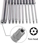 Fixinus 11 Piece Torx Head Screwdriver Bit Set, Magnetic 1/4 Inch Hex Shank S2 Steel 3 Inch Long Drill Bits, Security Torx Bits T6-T40, 75mm Length About this item 【11 Pieces Torx Bit Set】T6, T7, T8, T9, T10, T15, T20, T25, T27, T30, T40. Length: About 75 mm / 3 in 【Premium Quality】Magnetic tips are S2 Alloy Steel -- Good toughness and Will Last For Years. Surface sandblasting treatment improves the fatigue resistance of the product. 【Strong Magnetic】Can suck the screws easily when used it. 【Quick Change】1/4 inch hex shank fits into tools more easily and securely.