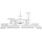 11-Piece Set Cake Stands Round Cupcake Stands,Metal For Wedding Brithday Party Description 11-Piece Set Cake Stands Round Cupcake Stands,Metal Wedding Brithday Party Celebration Dessert Display Plates, Silver Description This set of cake stands is made of sturdy iron, glass, and crystal bead, which is durable and features a delicate, smooth texture. With a silver electroplated exterior, crystal decorative beads, and a mirror panel, the cake stand will glow brilliantly when exposed to light or sunlight, creating a glittering dessert table to support your delicious food. It will become an attractive and atmospheric decoration to your room, wedding, or party to create your own stylish space. Key Features Practical Set: This is a 11-piece set consisting of a 3-tier cake stand, four rectangular trays, and two round trays, and four round cake stands. This kit will unify your decorating style and easily meet your daily decorating and display needs. Sturdy and Durable: It is made of high-quality iron and glass, and adopts a fine welding process, making it very strong, wear-resistant, impact-resistant, a nd not easy to deform to ensure good bearing performance and long service life. Elegant Appearance: The mirror panel and elegant silver appearance will sparkle under the light, while the crystal beads surrounding it give this cake stand a noble accent that will stand out at an upmarket party. Easy to Assemble&Disassemble: To assemble the cake stand, simply screw the cake pan into the pre-set holes in the base, saving time and effort. It also allows simple dismantling for carrying and storage. Ideal Dessert Display: The multiple styles of cake stands will nicely sort and display your cupcakes, muffins, pastries, biscuits, biscuits sweets, fruit, cheese, etc or other small items, making an attractive table centerpiece to show your friends and guests your hospitality and generosity. Ideal Gift: The elegant appearance and good practicality make it a great gift. You can present it as a gift for hostesses, family, and friends on Christmas, New Year, Thanksgiving day, etc. Easy to Clean : Its smooth, flat electroplating surface and mirror panel allow you to easily remove dust and stains with a damp rag. Customer Service : We aim to provide quality products and services. If you have any problems, please feel free to contact us. We will reply and solve the problem for you as soon as possible. Details Electroplating Process: It has undergone a meticulous electroplating process, so that it has good anti-rust and corrosion-resistance . At the same time, the electroplating process produces a mirror effect, adding a three-dimensional and exquisite feeling. Solid Base and Support Feet: The cake rack is designed with a secure conical base and rounded base, while the bottom of the tray uses spherical support feet to provide solid support and stability without tilting and shaking, and can also prevent the table from being scratched. Application It can be used for tea parties, wedding table center decorations, anniversaries, birthday parties, baby showers, bakeries, graduation ceremonies, Christmas, and Thanksgiving gifts, aisle guides, party decorations, and activity decorations, as well as home decorations. Specifications Material: Iron+Glass+Crystal Bead Color: Silver Assembly Required: Yes Style: Morden Number of Pieces: 11 Mounting Type: Freestanding Process: Welding, Electroplating Large Rectangular Tray Size: 30*20cm/11.81*7.87in Small Rectangular Tray Size: 10*30cm/3.93*11.81in Diameter of the Round Tray Size: 25cm/9.84in Diameter of the Three-tier Cake Stand: 30cm/11.81in+25cm/9.84in+20cm/7.87in Height of the Three-tier Cake Stand: 68cm/26.77in Cake Stand with Conical Column Base Size(D*H): 30*22cm/11.81*8.66in; 25*20cm/9.84*7.87in; 20*18cm/7.87*7.08in Raised Cake Stand With Crystal Bead Pendant Size(D*H): 10*44cm/3.93*17.32in Package Included 2* Large Rectangular Trays 2* Small Rectangular Trays 2* Round Trays 1* Three-tier Cake Stand 3* Cake Stands with Conical Column Base 1* Raised Cake Stand With Crystal Bead Pendant All Accessories for Installation Notes 1. Please do not soak in water or store in a damp place for a long time. 2. Please avoid exposure to the sun, and avoid scratching the surface with sharp objects. Dishwashers, ovens, or microwaves are not recommended. 3. Please note that the cakes in the photos is for showing. They are not included in the package. Please allow the slight color difference caused by the shooting light and 1-3cm error due to manual measurement, and make sure you do not mind before you order. Description Payment Delivery details Terms of sales About us Contact us Payment We accept ebay payment 。 Fees such as import duties, taxes are not included in the item price or shipping costs. These charges are the buyer's responsibility. Delivery details Shipping: 2-9 working days to: USA Terms of sales We maintain high standards of excellence and strive for hundred percent customer satisfaction. Feedback is very important to us. We hope that you contact us immediately before you give neutral or negative feedback, so that we can address your concerns. It is impossible to address issues if we do not know about them! About us Your satis faction is our ultimate goal. We work hard to earn your trust and future business. Our certified technicians have tested each item before shipping. The unit comes with 1 year limited warranty on all manufacturing defects. a) If you receive a defective item, you may return it or ask for a discount. Please contact us within 14 days after you receive the package. b) What you returned must be intact and in its original packaging as re? u. Customer is responsible for shipping costs of the returned item. c) We will cover the cost of shipping back t with the shipping rate indicated in the registration page. We will send you a new unit or refund the full payment you paid. Thank you. Contact us Business Hour Business Hour: Monday To Friday: 8:30 AM to 5:00 PM