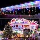 Features: 1.Used to decorate along the eaves of a house and simulate icicles hanging from the roof line. 2.The dangling strands of bright LED icicle lights will add attractive decorative light to your holiday display or outdoor living space without adding much to your electricity bill. 3. Refined modeling, Can be arbitrary shape so let your imagination run wild as you add joy to your house, neighborhood or event. Specifications: Material: PP & TPR & CR-V steel Total length: 3.5m(W) x 0.6m(H) The number of Strings: 18 String(40cm,50cm,70cm) The number of LED: 96 LED Protection class: IP44 Power consumption: <3W/Set LED working voltage: 110 Lifespan: 30000hrs1.Mini PACKAGE 1 × 96 LED string light(US Plug) CAUTION 1.The power voltage is permitted in +10%~-10% fluctuating.If it is beyond the said scope,it would influence lifespan,even unlighted or burnt out. 2.Make sure connecting wire is connected and sealed well to avoid defending electricity leakage. 3.Make sure waterproof protection,and no defending water leakage before connecting to extra power supply. 4.Before maintenance,make sure the power cut off.After assembling right,it can be connected power to use. 5.No breaking to any stipulation of fireproofing.Please ask professional to install. 6.8 different modes: Combination, IN Waves, Sequential, Slo-glo, Chasing/Flash, Slow Fade, Twinkle/Flash, Steady On. but the mode can't be saved. 7.Six String light can be connected together to have the best effect. NOTE: The lamp beads is done in waterproof and if you want to use the light outdoor, please make sure the controller is away from wet. The curtain string light is 4m(13ft) long and has 96 LEDs. Easily extendable design, comes with an extra female plug at the end of each set for extension, can be connected up to 8 sets of light strings at a single run to meet different length requirements. With one button for switching between 8 modes.: 1.Steady on; 2. wavy change; 3. continuous changes; 4. flashing changes; 5. slow flash; 6.on/off change; 7. dream change; 8. changes in flash; The controller has memory function, which could recover from the previous setting mode when you restart. Directly plug in and unplug it for power on and off. US standard outlet, 110 voltage.The string light output voltage is lower than the human body voltage, so it is very safe and convenient to use the string light. Application range: Christmas lighting; Market Engineering lighting, architectural decoration, decoration of trees along streets, parks, decoration, decorative river, urban night lighting, gardening, all over the environment decoration, home etc. Warm Tips: The lamp beads is done in waterproof and if you want to use the light outdoor, please make sure the controller is away from wet. Do not apply excessive force or repetitively bend the same spot.