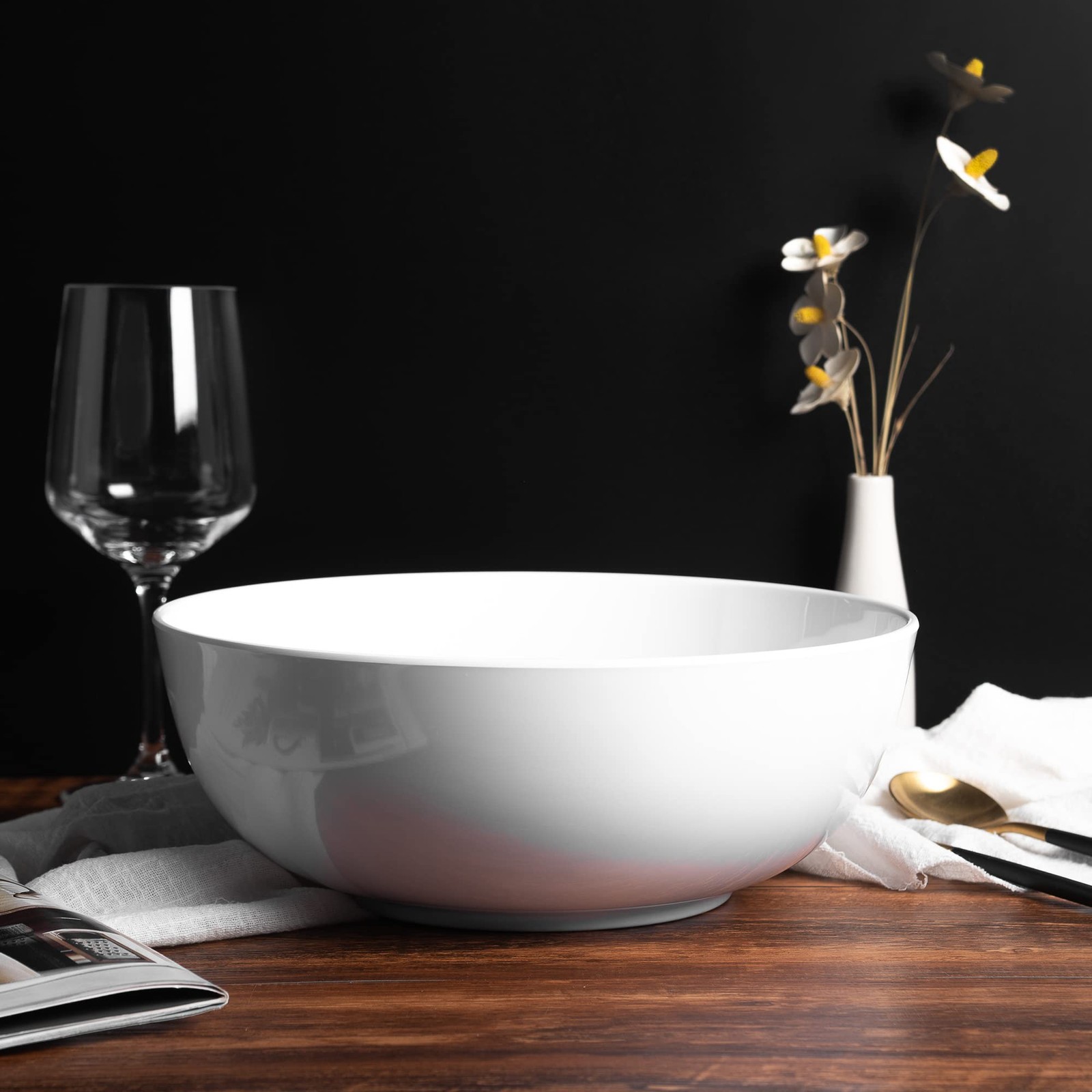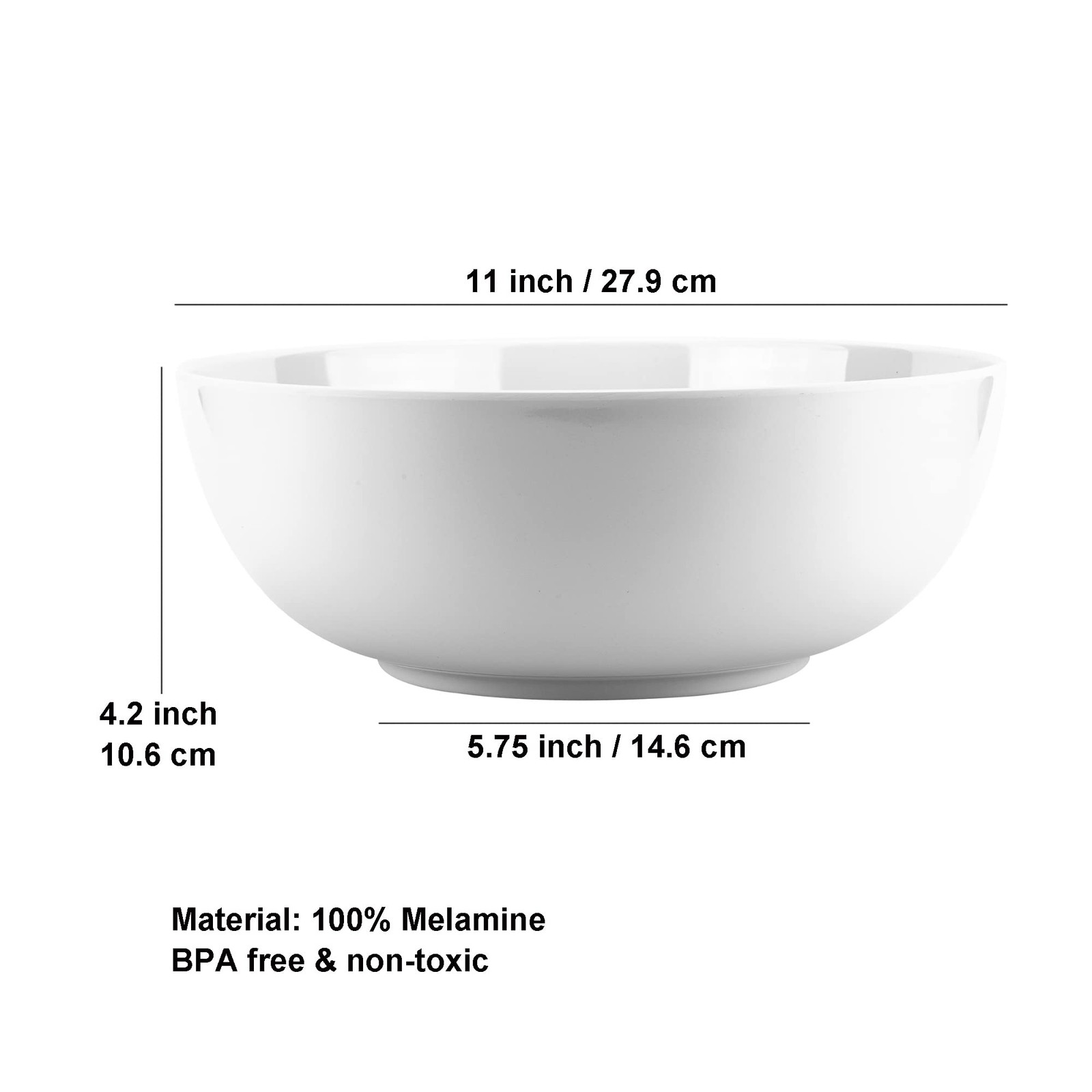 Serving Bowl - 11 Inch Classic Style (Soup, Cooked Food, Salads, Fruits…) Serving bowl is made 100% melamine with high quality, durable, and dishwasher safe. They are ready for your home or commercial use at, events, and parties. Design: Designed to be sleek and modern while still looking traditional. The serving bowl is shatter resistant all around to insulate any soup, salads, or drinks you may use it for. Functionality: "Perfect for salads fruit and more. Many customers use the serving bowl at events and parties for some really creative ideas like:Cooler for drinks/ Fruit/ Salads/ Soups" Durable and Dishwasher Safe top shelf,BPA Free. Melamine bowls set includes - 2pcs serving bowls.Dimensions: 11"Diameter x 4.25" H. Ideal for salads, vegetables, chili or curry and pasta dishes. Also great as a buffet and BBQ staple for serving breads, crisps and tortillas, pasta and rice salads or maybe even fruit punch. High quality Melamine dinnerware is perfect for everyday dining and entertaining; Serving bowl is great for all occasions: BBQ, pool parties, summer time, camping; Safe: 100% Melamine BPA free, refrigerator and dishwasher safe.This durable material is shatter resistant alternative to glass or Porcelain! And they are easy to use, clean and store: Dishwasher friendly and fully stackable! Quality service: We will offer a refund or replacement if you received a damaged or defective item. Please feel free to contact us.