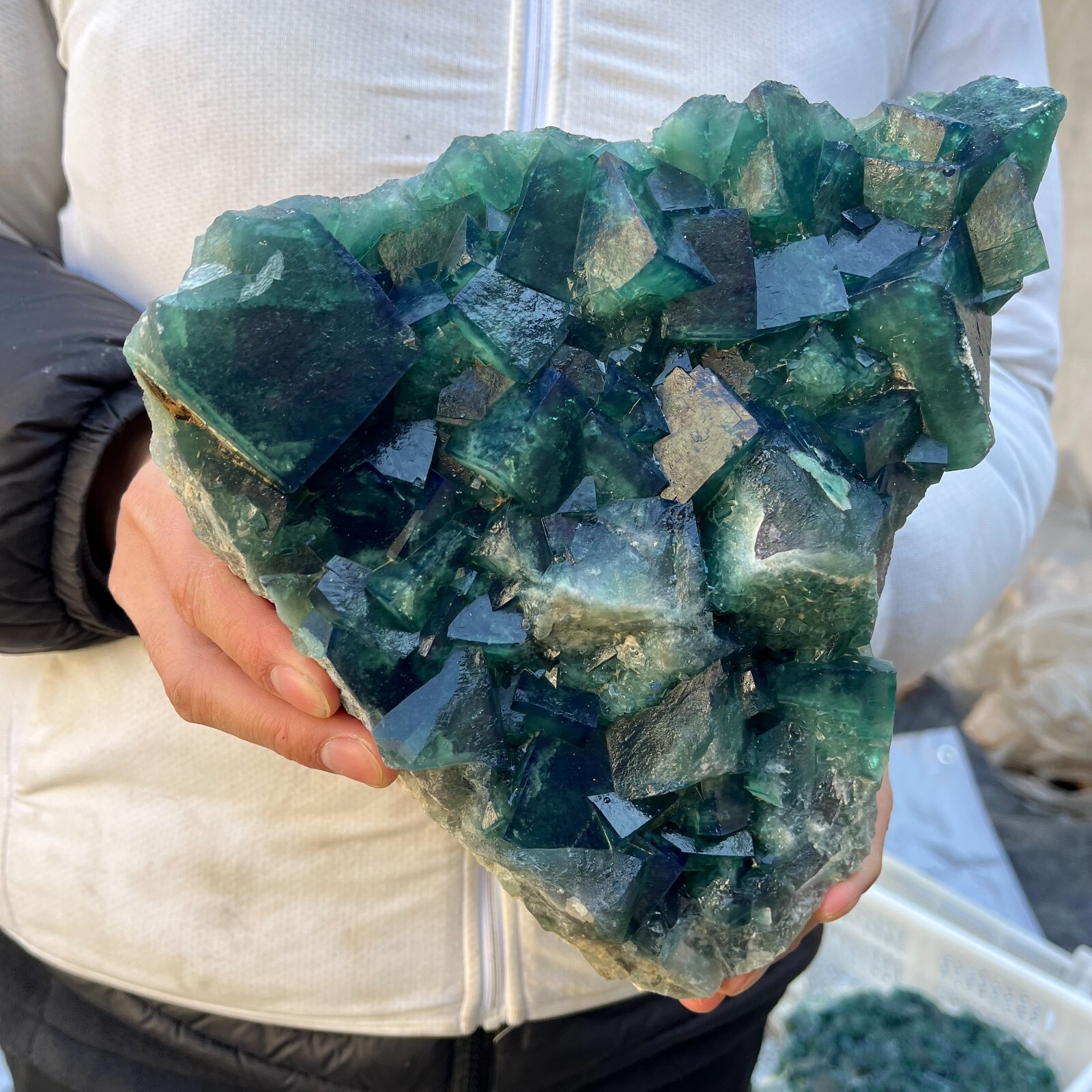 This stunning green fluorite cluster is absolutely mesmerizing! The natural cube formations and vibrant color make it a perfect display piece. It arrived well-packaged and looks even better in person—great size and weight for the price. A must-have for crystal lovers! Seller provided excellent service too. Highly recommend!