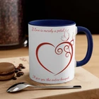 Add some color to your routine with this two-tone, custom accent coffee mug. This 11oz mug features an accented C-Handle that is comfortable to use, as well as an accented interior to add more contrast and character. .: White ceramic with colored interior and handle .: C-handle .: Eye-catching color contrast Image by [KatyArtDesign / Shutterstock]