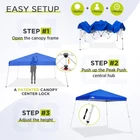 EASY SETUP: Say goodbye to complicated setups; this easy setup pop up canopy tent features the Peak Push system, a patented canopy center lock. This portable canopy requires no tools and easily opens and closes from the center in seconds. Its unique canopy tent center lock enables a seamless, one person setup, letting you maximize outdoor time with minimal effort EASILY ADJUSTABLE: The leg height has three settings to quickly adjust the canopy height and angle to maximize shade throughout the day. 64 square feet of shade, large enough for 5 people. (Slant leg design is 11'x11' at base and 9'x9' at the top) SUPERIOR QUALITY: UPF 50+ UV protection, water resistance, CPAI-84 flame resistance, 150D oxford fabric canopy top. Frame is powder-coated, rust-resistant, high-grade engineered steel, with hardened M5 bolts and nylon connection hardware for maximum durability COMPACT AND PORTABLE: Take this lightweight canopy anywhere with the 600x300D wheeled carrying bag; fits into most car trunks. Perfect for tailgates, the beach, the park or wherever your fun begins PROMISE: offers a 1-year limited after sale protection from the original date of purchase. Unlike many other canopy manufacturers, offers this for our frames, canopies and bags! If you have any other questions, please contact our professional service team