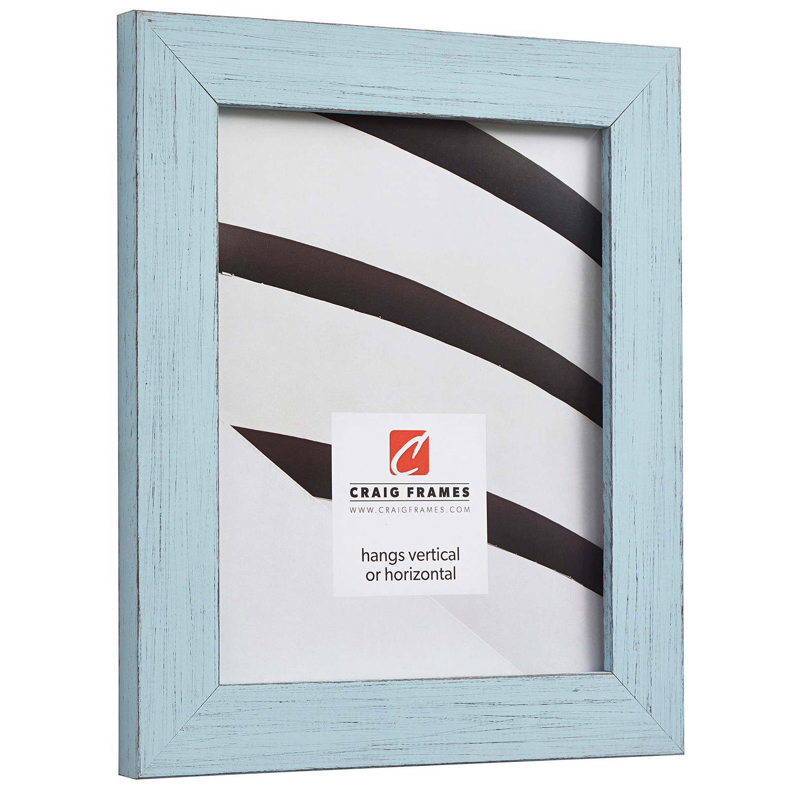 Rustic style; weathered light blue with visible wood grain; painted finish **IMPORTANT** THIS IS A NATURAL WOOD PRODUCT. WE CANNOT CONTROL VARIATIONS IN COLOR OR GRAIN PATTERN. Frame includes: glass, rigid black backing and pre-attached stamped hanging hardware Frame holds a 11 by 14-Inch photo/print/poster (viewable area reduced by .25" on each side due to frame lip) Frame moulding is 1.5 inches wide; solid wood construction Frame is designed for WALL HANGING only (hanging hardware allows for portrait or landscape orientation)