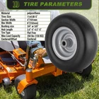 About this Item Specification : Tire and Wheel Model: 11x4.00-5"; Tire Diameter: 11"; Tire Width: 4"; Hub Length: 3.4" - 4" - 4.5" - 5” Centered Hub; Bushing Size: 3/4" or 5/8”; Rim Diameter: 6". Each wheel has a 350LBS dynamic load capacity. These 11x4.00-5 tires are designed for dynamic loads, not static loads. Say goodbye to frequent tire inflations with our 11x4.00-5 flat-free tires. Versatile Compatibility : The 11x4.00-5" flat-free lawn mower tire fits most zero-turn mowers and garden tractors. If the wheel size fits, it can also be used for garden carts, wheelbarrows, hand trucks, generators, trolleys, air compressors, wagons, pressure washers, etc. (Not for highway use). Universal Adapter Kit : These 11x4.00-5 lawn mower tires come pre-assembled with a 3.4" centered hub and 3/4" bushing. The package also includes a universal adapter kit, containing 4x 5/8" bushings, 8x 1/2" bushings, and 4x 1/4" wide nylon spacers. This ensures a perfect fit for various zero-turn lawn mowers, improving compatibility and ease of installation. Robust Construction : Made from high-quality polyurethane foam, these 11x4.00-5 lawn mower tires are durable and maintenance-free, providing long-lasting performance. They are puncture-proof, eliminating the need for air pressure or inflation, making them ideal for your zero-turn lawn mower. Solid Smooth Tread Tire : The smooth tread design of these 11x4.00-5 tires offers excellent traction and maneuverability without causing damage to your lawn. Ideal for the front tires of zero-turn mowers, they provide a smooth, controlled ride, making lawn care more efficient. This set includes 2 pcs of 11x4.00-5" flat-free lawn mower tires and wheels. For any questions, feel free to contact us via email.