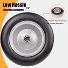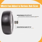 【Feature】11x4.00-5" flat-free tires provide bounce and load handling characteristics similar to an air-filled tire, making it puncture-proof, flat-free, Keep You Away from the Trouble of Inflating Tires Frequently. Seamless and smooth design for maximum protection of your lawn. Load capacity of 350 pounds 【Specification】 Universal Fit Smooth Tread Tire for Zero Turn Lawn Mowers model:11x4.00-5; Diameter 11’’; Axle Bore Diameter:3/4" Precision bearings with Extra 5/8"& 1/2" bushings; Hub length:3.25"-5.5" (adjustable via Metal Spacers). Please Check Carefully Before Buying to Make Sure the Tires Match. Not for highway use 【Low Hassle】 3/4-inch pre-installed Precision bearings, No Grease Required. Set of 2 11x4.00-5 Flat Free Lawn Mower Tires and Wheel. Comes with an additional adapter kit, including 5/8" & 1/2" bushings,0.44" metal spacers*4,0.22"metal spacers*2, which can greatly expand its applicability. Whether you are a DIY enthusiast or a professional mechanic, you can easily install this tire 【Applications】 Widely used on many kinds of zero-turn lawn mowers front tires. Also fits wheelbarrows, garden carts, hand trucks, generators, air compressors, wagons, pressure washers and other types of outdoor power equipment BUY WITH CONFIDENCE: For any reason you're not completely satisfied, please kindly us by logging in your Buyer Account > Click Your Account > your order > Find your order and click Seller, we will respond you in business day. Customer satisfaction is our tireless pursuit