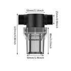 Description: Product Name: Water Pipe Filter Material: PC Color: Black + Transparent Threaded Interface: External thread Interface Size: 4-point Interface (1/2 inch), 6-point Interface (3/4 inch) Filter Mesh: 40 mesh, 80 mesh Uses: Suitable for garden irrigation, car washing, fish tanks, water tanks, etc. Features: The size of the 40 mesh and 80 mesh filters is moderate, and the flow rate will not be affected when filtering impurities. In winter or in the sun for a long time, please put a protective cover on the surface of the filter to prevent the shell from bursting. The garden hose filter is small in size, easy to clean and reuse, no need to replace it for a long time. The filter is available in several different sizes: 1/2 inch, 3/4 inch. The filter is suitable for garden hoses, pressure washers and RVs, which can effectively filter out impurities and increase the life of water equipment. Package includes: 1 X Water Pipe Filter Notice: 1. Transition: 1cm=10mm=0.39inch 2. Please allow 0-3cm error due to manual measurement. Please make sure you do not mind before bidding. 3. Due to the difference between different monitors, the picture may not reflect the actual color of the item. Thanks!