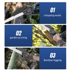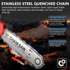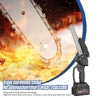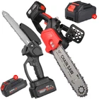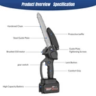 Red - 12" Chainsaw Features: Our 12-inch electric chain saw has an upgraded high-efficiency brushless motor with reliable and efficient performance. The motor also reduces noise, making it an ideal tool for quiet and smooth cutting. Powerful brushless motor, large capacity and high working efficiency. Dust-proof cooling net can prevent foreign objects from entering the motor, which can effectively dissipate heat and will not burn the machine. Our hand-held cordless chainsaw weighs only 4.85 pounds, which is compact, convenient and easy to carry around. It can be used with one hand, and it is not easy to get tired after long-term use. Even the elderly and women can easily control it. Our cordless chainsaws are widely used in gardens, farms, parks, forests, pastures, orchards and indoors to meet all your cutting needs. If you go camping, you can also take this cordless chainsaw with you. Our mini super saw is also a perfect gift for dad, friends and husband. In this mini chainsaw kit, you will get everything you need. Specifications: Voltage: 21V Power: 1100W Idle Speed: 0-3500r/min (Sprocket Speed) Chain Speed: 8.0m/s Chain Specification: 3/8 Guide Plate Size: 12 inches Maximum Cutting Diameter: 285mm Scope of Application: Pruning, Chopping Wood and Logging. Package Contains: 1 x Chainsaw 2 x Battery 1 x Charger 1 x Guide Plate 1 x Socket Wrench 1 x Chain 1 x Storage Box 1 x English Instruction Manual Black - 8" & 6" Chainsaw LARGE-CAPACITY BATTERY: Rechargeable lithium battery chainsaw, powerful lithium battery, wireless binding, free cutting, 6000mAh lithium battery life is greatly improved. HIGH-QUALITY CHAIN: After deep quenching treatment to ensure smooth cutting, the wooden tooth design can make the chain saw stuck in the branch, more effective and faster cutting. The tungsten steel ball material does not need to be lubricated, which reduces the resistance of the machine during use, reduces the wear of the machine, and increases the service life BUY ONE EQUALS TWO: Upgraded 8/6 Inch chain switch design, allows you to switch 2 length of chains easy and quickly for multi-purpose use when cutting/trimming different size of trees/branches as you like. 8 inch chain for larger thicker wood cutting (6-10inch diameter); 6inch chain for regular size wood cutting(0-6inch diameter). SAFETY CHAINSAW: This small chainsaw has a safety switch, you need to hold down the safety lock and trigger at the same time to start the saw to prevent accidental; Anti-splash baffle prevents wood chips from splashing during work. PERFECT GIFT : Mini chain saw is an excellent alternative for all kinds of the household, garden, yard, or farm projects. It is suitable for wood cutting, tree limbs chopping, branch pruning, gardening and more. Perfect Gift for Dad, Friends, husband. COMPLELETLY ACCESSORIES : , 1 x Electric Chainsaw, 2 x battery, 1 x 8-inch saw blade, 1 x 6-inch saw blade, 2 x 8" chain, 2 X 6" chain, 1 x Charger, 1 x Screwdriver,1 x Suitcase.