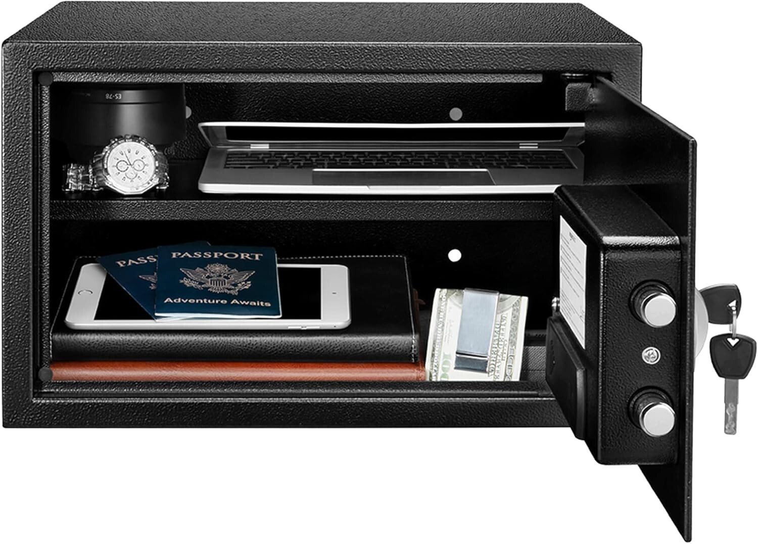 Compact 1.2 Cubic Feet Security Safe with Electronic Lock and Adjustable Shelf < class="slides"> ‹ › ‹ › ‹ › ‹ › ‹ › ‹ › ‹ › ‹ › ‹ › ‹ › ‹ › ‹ › Compact 1.2 Cubic Feet Security Safe Secure your most valuable possessions with the ultimate peace of mind using our Compact 1.2 Cubic Feet Security Safe . Designed for both convenience and security, this state-of-the-art safe is ideal for home, office, or travel. Key Features: <> Generous 1.2 cubic-foot capacity provides ample space for valuables, documents, and more. Advanced electronic lock system with two emergency override keys for added security and easy access. Top-grade steel construction combined with a carpeted floor to protect your items from scratches and damage. Reprogrammable digital access; operates using four AA batteries (batteries not included). Fortified with 2 live-door bolts and pry-resistant concealed hinges for superior security. Features an adjustable/removable interior shelf to maximize storage options. Includes four bolts for secure mounting to the wall, floor, or shelf, ensuring stability and safety. Weighs 26.84 pounds, offering a robust yet manageable design. Dimensions: Exterior - 16.93 x 14.57 x 10.63 inches (WxDxH); Interior - 16.77 x 11.93 x 10.47 inches (WxDxH); Door thickness of approximately 2 inches for enhanced security. Why Choose Our Security Safe? Invest in the safety and security of your cherished items with our Compact Security Safe . Its state-of-the-art electronic locking mechanism paired with heavy-duty steel construction ensures optimal protection against unauthorized access. The added flexibility of the adjustable shelf allows you to customize the storage space according to your needs. When you choose this security safe, you are not just purchasing a product; you are making a wise choice for the safety of your most important possessions. Don’t compromise on security—opt for our high-quality security safe today! Shipping <> <> Free & Fast Shipping - We offer free shipping to most of the USA with a normal delivery time of 3-7 days. However, due to the current situation, additional delivery time (up to 3 weeks) may be required for some items. Alternative Carriers - We may use alternative carriers (e.g. USPS, FedEx, UPS, etc.) to ensure your package arrives safely and on time. Due to the use of multiple carriers, we are unable to provide a tracking number automatically. Handling Time - Orders are processed and shipped within 1-2 business days of receiving cleared payment. Shipping Restrictions - Shipping to Alaska, Hawaii, Puerto Rico, Guam, and other US territories may incur shipping charges or delivery restrictions. Please contact us before ordering, or your order can be refunded/cancelled. State Restrictions - There may be restrictions based on your state of purchase. For example, certain items may not be shipped to California due to state regulations. Contact for Tracking Updates - If you require tracking updates or have any concerns about the delivery of your order, please feel free to contact us, and we will be happy to assist you. Return <> <> 30-Day Hassle-Free Returns - We want you to be completely satisfied with your purchase. If you are not, you can return the item within 30 days of receiving it for a full refund or exchange. Easy Return Process - To start a return, simply contact us and we will provide you with a prepaid return shipping label and detailed instructions. Restocking Fee - There are no restocking fees for returns. However, the buyer is responsible for return shipping costs if the return is not due to a seller's error. Refund Processing Time - Refunds will be processed within 5 business days of receiving the returned item in its condition. Payment We accept all major credit cards, PayPal, and Apple Pay for your convenience. Your payment information is secure and encrypted to ensure a safe and seamless transaction. Please complete your payment within 3 days of purchase to avoid any delays in shipping. Feedback Your feedback is extremely important to us. We strive to provide the best products and customer service possible. If you are satisfied with your purchase, please take a moment to leave us a positive review. If you have any concerns or issues with your order, please contact us before leaving negative feedback. We are committed to resolving any problems and ensuring your satisfaction. Contact Us If you have any questions or concerns, please feel free to out to our customer support team. You can contact us through the eBay messaging system. We are available Monday to Friday, 9:00 am to 5:00 pm EST, and we will do our best to respond to your inquiry within 24 hours. Buy it now and enjoy a pleasant shopping experience! Material: Alloy Steel Type: Details In Description Size: 1.2 Cubic Feet Lock Type: Electronic Color: Black Item Weight: 11.79 Kilograms