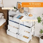Jojoka Dresser for Bedroom with 12 Drawer, Dressers & Chests of Drawers for Hallway, Entryway, Storage Organizer Unit with Fabric, Sturdy Metal Frame, Wood Tabletop, Easy Pull Handle ❤️ Specifications: Material:Metal,MDF Board,Fabric Drawers Color:Grey,Brown,Pink,Black,White Shape:Rectangular Finish: Wooden Style: Industrial Number of Drawers:12 Assembly Required:Yes Mounting Type:Freestanding Product Size: 38.9"L x 11.8"W x 43.3"H Item Weight:40.3 lb Room Type:Bedroom, Living Room, Family Room, Home Office Recommended Location:Entryway,Hallway,Foyer,Corridor Features:With 12 Drawers,With Side Pockets & Hooks,Large Capacity,Thickened Board,Sturdy and Durable ❤️ Features: 👍 【 Versatile Drawer Chest】 A neat and clean design that can decorate a wide variety of rooms, making organization and storage drawers the perfect complement to any contemporary decor - living room, bedroom, entryway, bathroom, and more. Works perfectly with other storage furniture. 👍 【 12 Drawer Dresser For Storaget】 The fabric dresser for bedroom Designed with 10 individually collapsible drawers, including 6 drawers for small items, 2 drawers with 2 compartments for medium size items and 6 large size drawers for Large size items. The fabric dresser for the bedroom offers endless organizational possibilities. 👍 【 Design With Side Pockets & Hookst】 Dresser extra design 1 side pocket and 2 side hooks. The side pockets allow for more detailed storage, adding extra space for thin items and the hooks allow for easy access to bags and umbrella, bringing more convenience to your life. 👍 【 Sturdy and Durablet】 The sturdy steel frame and waterproof wood top ensure years of use. Heavy-duty metal frame with X-frame backing and wall anti-tilt kit enhances the stability of this fabric dresser. Adjustable feet on the bottom can adjust balance, enhance stability and protect your floor from scratches. 👍 【 Easy Assemblyt】 Comes with detailed instructions for easy installation; all parts and accessories are included in the package. Your satisfaction is our first priority - we are here to assist you with any questions about the quality of our products or any questions you may have during your purchase. 📦 Package Included: Dresser Installation Tool 🏙️About us Worried about not finding your ideal furniture?Let's unlock all your worries!We are a large and competent e-commerce company with more than ten warehouses in the US.We have provided millions of products for our customers!Our brand is dedicated to providing our customers with high-quality, uniquely designed, and well-crafted products at affordable prices.We have many storage products as wardrobes, shoe cabinets, lockers, etc. We also have different furniture for you to choose from, giving you an ideal solution to decorate your home. 🚚 About Shipping After receiving payment, we will process your order within 1 working day (excluding weekends),and it will takes about 5-10 days to arrive. ☎️After Sales All items will be strictly inspected before being shipped,but we cannot determine what will happen to them during transportation.We hope that all our buyers can receive complete package.If you have any questions when receiving the items,please feel free to contact us at any time and we will do our best to solve the problem for you.
