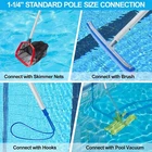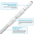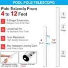 【Upgraded Thickened 1.30 mm Pool Pole 】The pool cleaning pole is made from commercial grade 1.30 mm thick anodized aluminum in smooth silver finish, not easy to bend and deform even if it is used for a long time, strong bearing capacity, solid construction,strudy and durable.Noted: If you want purchse the swimming pool cleaning kit ,please search the below 【B0CZQNLF2K】【B0CZQQMHJF】 【Pool Skimmer Pole Expands up to 12FT-Slip Resistant Locking Gam 】3 Piece Thicken pole with 2 Slip Resistant Locking Gam and Striped Rubber Head with Lifting Ring Design - Makes it easy to lock the pole length in place and keep the length in place without it slipping while in use. Expands in length from 4Feet up to 12 Feet,which provides you the extra reach needed when cleaning a wide and deep swimming pool.An ideal daily use swimming pool pole for fast, easy, and efficient clean up the pools. 【Strong Thicken Aluminum Alloy Material -Lock Tight-No Slip】This telescopic pole for pool cleaning is made of high quality ribbed aluminum alloy with anti-skid corrugated design, which is not rusty, corrosion-resistant, light-weight, and makes cleaning of swimming pools more easier for works effortlessly and save your money.The rubber coated ripple with handle & locking cams allows you to have firm grip while you are cleaning your pool.This is a pool vacuum pole & pool brush pole that lasts. 【Pool Brush Pole-Universal Fit】The swimming telescoping pool pole designed with an 1-1/4" diameter connection end, which is the universal size needed to fit standard size pool accessories. The pool extension pole universal fit size allows you to easily attach most pool maintenance accessories like pool cleaning net, skimmer, brush, rake, vacuum head, rescue hook, hammerhead cleaner, etc. 【100% Quality Assurance】100% Satisfaction Guarantee: Buy with confidence, if you're not satisfied with this item at anytime within one year of purchase, we'll provide a or replacement. If the pool poles you receive are found to be damaged or other quality problems, please send us an . Package: 1 x 12FT Telescopic pool pole.