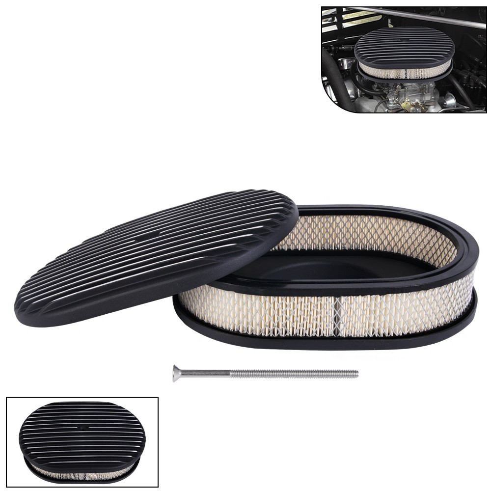 SPECIFICATIONS: Type: Air Cleaner Filter Material: Non-woven Fabric, Aluminum Size: 12" L × 8-1/4" W × 3" H, with 5-1/8" neck and 2" tall element. Shape:Oval FEATURES: 100% Brand New and Never Used or Installed. Strict quality control standards to build and test Complete with replaceable paper filter element Tapered head stud can be trimmed for your application Fins and most of top is polished As cast in between the fins FITMENT: Fits 5 1/8" Carburetors (Edelbrock, Holley, Demon, Rochester Etc.) Fits Ford, Chevy & Mopar (CHRYLER, DODGE, PLYMOUTH) PACKAGE INCLUDE: 1 x 12" Air Cleaner Kit All accessories in the picture are included. Payment Delivery details Return Policy About us Contact us Payment We will only ship to eBay confirmed shipping addresses. It is buyer responsibility to provide correct shipping address before purchasing. Buyer is responsible for any reshipping cost due to wrong or undeliverable addresses. Delivery details Items are shipped within 1-2 business days of receiving payment verification. Domestic shipping fees are applied to the lower 48 Continental States only (AK, HI, GU, PR, VI, Base Addresses, may require additional shipping cost) Please e-mail us for a shipping quote. INTERNATIONAL shipping available through eBay's global shipping. But Buyer might pay some VAT and Duties; seller is no responsible with any VAT and Duties. Deliveries are generally done within 3-5 business days nationwide and 10-20 days worldwide. Damaged item due to shipping must reported to us within 48 hours of delivery in order to place claim with shipping company. Return Policy No returns or exchanges once item has been installed, used or modified. We will exchange the item only if is defective or if customer receive the wrong parts. Returns and/or exchanges must be done within 30 days from delivery date. All returns and/or exchanges must be in brand new/uninstalled condition. About us Always Free Shipping with your Parts orders. Lowest price on brand new, in-the-box auto parts. Business time is Monday - Saturday 8:30 am to 5:30 pm HKT except all Holidays. Contact us Always Free Shipping with your Parts orders. Lowest price on brand new, in-the-box auto parts. Business time is Monday - Saturday 8:30 am to 5:30 pm HKT except all Holidays.