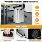12 Gal Kitchen Stainless Steel Trash Can Basket Detachable Bucket With Wing Lids ● Detachable Inner Bucket: Simplify your waste disposal routine with the 12 gal trash can's easily removable inner bucket. This clever feature allows for quick and clean trash bag changes while also protecting the outer shell from spills and stains. ● Stainless Steel Structure: The kitchen waste bin boasts a 3-layered frame, composed of a stainless steel layer, a drawing wire layer, and an anti-fingerprint layer. Besides, it is robust and rustproof for long-term use, while being stain-proof for easy cleanup. ● Soft-Closing Mechanism: To improve the using experience, the hand-free garbage can allows for pedal control and has a soft-closing system that makes the wing lids descend gracefully, eliminating disruptive noise and avoiding pinch accidents. ● Full-Open Wing Lids: The waste bin's unique wing lid design makes it an ideal fit for low-clearance areas, allowing you to tuck it away neatly under counters or desks. The flaps open effortlessly from the center, offering a wide opening for discarding waste. ● Slim Shape and Wide Use: Designed to be space-saving, the step trash can properly fits into any corner space. In addition, it comes with side handles, enabling you to move it to your kitchen, bathroom, living room, office, and more. Color: Silver Material: Stainless Steel, PP Size of Closed Status: 20.5" x 10.5" x 27" (L x W x H) Height of Open Status31.5" Size of Inner Bucket: 16" x 9" x 24" (L x W x H) Max Capacity: 12 Gal Net Weight: 16 lbs