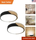 12 Inch 24W Bedroom Light Fixture with Round Wood Modern Black Flat Overhead Ceiling Lamps for Kitchen Hallway Laundry Warm White 3000K, Not Dimmable - 2 Pack 【Energy-Saving】 flush mount ceiling light with built-in high quality LED lamp beads, 24W LED lights provide 2400 lumens, equivalent to 150W incandescent lamps to save up to 85% of the energy, while the built-in intelligent driver to provide constant current protection, short-circuit protection, service life of more than 50,000 hours! 【Minimalism Design】Modern Wood Ceiling Light Fixture adopts ultra-thin design, simple and elegant, beautiful and durable, create simple and cozy atmosphere for your home. 【High Quality Material】The flush mount light is made of oak, metal and acrylic. The oak has a smooth surface and the acrylic shade transmits light well with a soft, even light that protects the eyes from glare. 【Easy Installation】This round ceiling light fixtures all mounting hardware, necessary accessories and instruction are included. You can quickly and easily mount your light fixture on the ceiling! 【Application】Our ceiling lighting fixture match most furniture styles and fit perfectly into any space, suitable for bedroom, living room,kitchen, office, hallway, laundry room, entry, stairway, corridor, nursery room. Light Up Your Home With Modern LED Ceiling Lamp