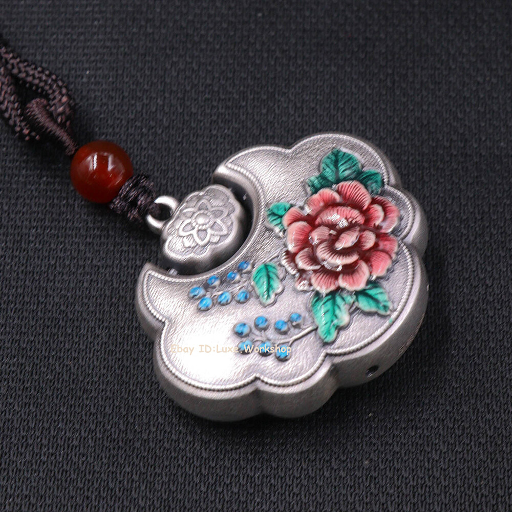 This stunning 999 pure silver pendant is a true work of art! The delicate peony enamel painting adds a vibrant pop of color against the bright silver, while the longevity lock design gives it meaningful elegance. At 1.2 inches, it's the perfect dainty statement piece that feels substantial (11g) without being bulky. Love that it comes with proper 999 silver stamps and care instructions—mine arrived shining beautifully. The vintage Thai silver look makes it stand out from typical jewelry. Already getting compliments!