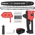 Features: 【Powerful and Efficient】: Equipped with a 1000W brushless motor, the 12-inch high-speed wireless lithium battery chainsaw delivers powerful performance for faster cutting. With a speed of 4500rpm, it effortlessly tackles various woodworking tasks, making it an excellent choice for professionals and DIY enthusiasts alike. 【Cordless Design with Long Battery Life】: Say goodbye to tangled cords and limited mobility. This battery powered chainsaw offers cordless convenience, allowing you to move freely and easily navigate around your work area. The included battery and charger provide long-lasting power, ensuring uninterrupted operation during your projects. 【Versatile and Lightweight】: Whether you're pruning branches or felling small trees, this cordless chainsaw is up for the task. Its lightweight design makes it easy to maneuver and reduces fatigue, allowing you to work comfortably for extended periods. It's perfect for both professional use in the woodworking industry and for regular home maintenance. 【Safe and User-Friendly】: Designed with user safety in mind, this electric chainsaw features multiple safety features, including a safety switch. The ergonomic handle provides a comfortable grip and reduces vibrations, minimizing the risk of accidents and ensuring a smooth cutting experience. 【Quiet Operation and Easy Maintenance】: Compared to traditional gas-powered chainsaws, this electric chainsaw cordless operates quietly, creating a peaceful working environment and reducing noise pollution. Additionally, its low-maintenance design saves you time and effort, allowing you to focus more on your projects and less on maintenance tasks. Specification: Product material: ABS + stainless steel Product size: 64 x 18 x 15cm / 25.2 x 7.09 x 5.91in Chain size: 12" Product color: Black Red Battery: 1*48V 4000mAh battery Power: 1000W Speed: 4500rpm Charging time: about 3h Usage time: about 30min Plug type: 110V US plug Packing List: 1 x Electric Chainsaw 1 x Wrench 1 x Charger 1 x Battery 1 x Manual