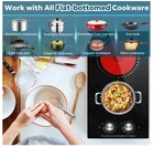 110V-120V Plug-and-Play Electric Cooktop: Cusinesync portable 2-burner electric ceramic cooktop operates on 110-120V, which is compatible with the standard voltage in US households. It’s plug-and-play, so no need for additional wiring. The two burners offer 1200W and 800W of power, ideal for versatile cooking needs. At just 12 inches, it fits seamlessly into any kitchen countertop without taking up much space. Before purchasing, please confirm the dimensions, and don’t hesitate to contact us if you have any questions. Simple Knob Control with 9 Power Levels: This electric ceramic cooktop offers 9 power levels, easily adjusted through 2 separate knobs. With no complicated settings or programs, this stove is user-friendly and perfect for seniors or those with poor eyesight. If you prefer a simpler stove without too many functions, the knob-controlled design is a great choice. Safe and Harmless Ceramic Cooktop: Cusinesync electric cooktop is equipped with a high-temperature warning feature. If the display shows "H," it indicates that the glass surface is very hot, reminding you not to touch it. Additionally, if the cooktop is accidentally turned on, it will automatically shut off after a certain period. Compatible with All Cookware Types: Unlike induction cooktops, which require magnetic cookware, this electric ceramic cooktop is compatible with pots and pans of various materials, including cast iron, stainless steel, ceramic, glass, and other heat-resistant cookware. Additionally, unlike induction cooktops, the electric ceramic stove does not emit electromagnetic radiation, making it completely safe for long-term use and harmless to the human body. Sleek and Modern Ceramic Glass Cooktop: Featuring a black ceramic glass surface, this cooktop adds a modern, stylish look to any kitchen. The smooth, heat-resistant glass is not only durable but also easy to clean. This versatile cooktop can be used as a portable countertop appliance or installed as a built-in cooktop, saving space and enhancing the aesthetic of your kitchen.