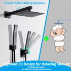 Built to Last: All-metal sturdy construction. Mixing valve made of quality brass with rust-free characteristics. 304 Stainless Steel Rain Shower Head with silicone nozzles. Provide excellent water coverage, anti-clogging, anti-oxidation and easy to clean. Prevent Water Hammer: The advanced pressure balance ceramic disc cartridge can monitors water pressure balance, helping to protect you from being scalded by sudden changes in hot or cold water pressure. The recommended water temperature for the bath or shower is between 90℉ - 110℉. 12'' Rain Shower Head: 360 rotation angle-adjustable solid ball joint nut, meets different angle position shower needs. The combination of ultra-thin and air-in technology leads to strong and high pressure, optimized for any water pressure, it will save water for you. Extra Long Shower Hose: Flexible, explosion-proof, and anti-kink. 1.5m/4.9ft extra long hose can reach the bathroom corners, eliminating cleaning blind spots. Easy Installtion: Shower mixer valve and trim kit with NPT 1/2" connecting thread,designed to easily install with standard U.S. plumbing connections for saving man-hour cost during installing.