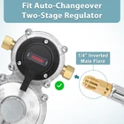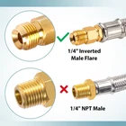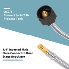 Standard Connector: QCC-1 x 1/4" Inverted male flare. (NOT 1/4" male NPT) Application: Connect your camper's propane tanks to the 2-Stage auto changeover LP propane gas regulator to a 5lb-20lb LP propane tank.Perfect for Flame King, Camco, Fairview and more More Durable: Stainless braided camper gas line replacement effectively reduces damage caused by friction and animals Safety: The well-machined thread ensures your safe and leak-free operation. Suitable for BBQ, RV and camping needs or having an outdoor cookout Easy to Install: Propane pigtail hose can be quickly and easily connected to propane tanks and RV's two-stage regulators without tools
