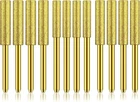 12 PCS Chainsaw Sharpener Bits, High Hardness Diamond Chainsaw Sharpener Golden About this item: Packaging Information: The set includes 12 chain saw blade sharpener heads, available in three sizes (4 of each size). This ample quantity provides users with sufficient spare options, ensuring long-term use without frequent replacement purchases. Stay prepared and maintain your tools efficiently. High-quality Material: Made of premium metal, our chainsaw chain sharpener tool heads offer a superb polishing effect. The uniform, delicate carving and hard texture make these materials rust and wear-resistant, ensuring long-lasting durability. This sturdy and lightweight construction resists breaking, deforming, or bending. Wide Range of Uses: Beyond chainsaw sharpening, our 7/32 diamond chainsaw file is perfect for various polishing and engraving tasks. Ideal for sculptures, jade, gemstones, and other parts, this versatile chain saw sharpener tool becomes a powerful asset for numerous crafts and creations. Multi-size Application: The kit offers three sizes of sharpening stones (5/32-inch, 3/16-inch, and 7/32-inch), catering to different chainsaw chain models and sizes. This ensures users can find the perfect sharpener for their specific maintenance needs, providing comprehensive support for various tools. Easy to Use: Designed with a tail diameter of 3 mm, our chainsaw sharpener heads fit most hand tools, simplifying polishing and grinding tasks. Users can sharpen chains directly without removing them, saving valuable time and effort. This user-friendly feature makes maintenance quick and straightforward.