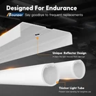 Super brightness: With 4400 lumens brightness at 5000K daylight white, these 4ft led shop lights only consume 40W while provide bright illumination with 250W (6 times more than conventional fluorescent lights). It is an amazing LED Efficiency of 110 lm/w, which can save the electricity expense for you. Reflector design: This shop lighting is equipped with the reflector which is designed for giving up more concentrated lighting and bringing much brighter illumination than other lights without the reflector. Meanwhile, this robust reflector cover will not be bent and broken easily due to its strong construction. Simple installation: Follow our installation guide for a quick and easy setup with included mounting hardware (56in Power Cord with Plug)! Directly mount to the ceiling or suspend from the ceiling for instant bright shop light in your garages, basements, warehouses, and storage area. Daisy-chain linkability: 4ft linkable led shop light can seamlessly connect up to 4 lights with plug connections for energy savings in your home, office or any workspace. Wide application: led shop lights can be applied in multiple areas, such as home garages, barns, attics, workshop, workbench, utility room, shed, equipment room, tool room, etc. Let there be light!