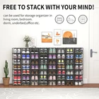 Organize your closet or hallway and keep your shoes dust and neatly organized with the stackable shoe storage bins. The clear makes it easy to view the contents within Stackable design to help maximize your space. Stack or use them side by side to keep your shoes organized and easy to find. Ideal for organizing small daily items such as shoes, scarves, winter gear, clothing, purses, crafts, toys, books, games and more Ideal for closet, bedroom, bathroom, laundry room, craft room, mudroom, offices, playroom, garage, or any room of your home / apartment / condo / dorm room / RV or camper Practically designed with rear ventilation holes to allow circulation and odor prevention. Foldable design for easy storage when not in use. Quickly unfolds for easy and convenient storage Made of sturdy and durable high quality strong plastic material. Lightweight soft plastic walls and hard plastic door frame. Each bin measures approx. 13.4” × 9.5” × 5.7”. Made for medium size shoes up to size 8 men’s