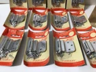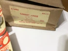 12 pair of semi-concealed cabinet door hinges, new old stock on cards in box, 3/8" inset mounted-3/8" offset, #826-CM, plated bright chrome finish, "Standard" brand, Shelby Metal Products Company, Shelby, Ohio.