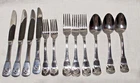 The 12-piece Cuisinart Elite FRENCH ROOSTER flatware set includes a knife, fork, and spoon, all made of stainless steel with a French wood tone design featuring a FRENCH ROOSTER pattern. The set is silver in color, with a glossy finish and solid handle pattern. It is dishwasher safe, reusable, and can be machine washed up to 100°F. This stylish and durable flatware set is suitable for all occasions and comes with a lifetime manufacturer warranty. Perfect for adults, this set adds a touch of elegance to any dining experience.