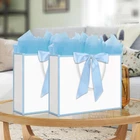 Specification: Packing list: 12 x Large gift bags Material: kraft paper, made from recycled paper Color: White and Light Blue Size: 12.6 x 4.5 x 10 Inches Type: Large Gift Bags, Large Paper Bags, Large party favor bags Occasion: Wholesale and retail bags, Shopping bags, Business gift bags, Birthdays, Christmas, Holiday, Father's Day, Mother's Day, Valentine's Day, Goodie bags, thank you gift bags, Bulk Favor Bags, Bridesmaid Party, Bachelorette Party, Baby Shower or any occasion. Large Size: Kraft paper bags with handles measure 12.6 x 4.5 x 10 Inches, reusable and recyclable. The present bags can be widely used for in hotel, shops , boutique, party and other places Simple and Elegant Design: The gift bags with handles is designed with light blue trims and bow ribbon to make your gift look more elegant and fashionable, making your gift more memorable to the recipient Rope Handle and Tissue Paper: The exquisite rope handle is stronger than ordinary paper handles, and it is more comfortable to use. Each bag is matched with two light blue tissue papers. It will makes the gift look more upscale and texture Thickened Gift Paper Bag: Thanks to the big paper bag is made of thick kraft paper material, the bottom is reinforced and flat, sturdy, and not easy to tear. Our kraft paper bags can bear heavier weight Variant Occasions: These paper gift bags can be used as birthday party bags, bachelorette party bags, wedding bags, baby shower bags, thank you gift bags, anniversary party bags, Mother's Day and other holiday gift bags, party favor bags