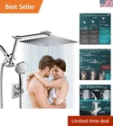 12'' Rain , High Pressure Rainfall Shower Head with 16'' Flexible Adjustment of Height/Angle Upgraded Extension Arm and 5 Setting Spray Handheld Shower Head, Anti-leak Chrome 12 Inch : The 12 " Rain Shower Head is a high performance and excellent combination. The combination of the rain showerhead and hand-held showerhead creates a truly indulgent shower experience, providing a satisfying and enjoyable bathing experience every time. 16 Inch Upgraded Shower Extension Arm : Newly upgraded 16 "extension arm avoids the hassle of getting too close to the wall in the shower. The tight and setting screws greatly improve the load-bearing capacity of the extension arm. The dual adjustment offers a variety of Angle options, up to inches up or down, providing a great vertical shower while catering to a family's height requirements. 12 Inch Large Rain Shower Head : 12 inch rain shower head provides ample coverage, enveloping you in a soothing rainfall-like cascade. Combined ultra-thin design with air-in technology, the large shower head has 144 splash jets that deliver a rain spray. The high-pressure feature ensures a rejuvenating and invigorating shower, leaving you feeling refreshed and energized. 5 Spray Setting Handheld Shower Head : The hand held shower head has 5 spray setting, it offers the flexibility to target specific areas or to rinse off with water in each mode is fine dense and uniform, making your skin feel gentle and comfortable Meet Standard and Easy Installation : This shower arm extension has G1/2 standard connection and meets standard rain shower head and handheld shower head. Installation of the system was surprisingly straightforward. The instructions provided were clear and easy to follow, and all the necessary hardware was included.