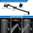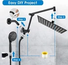 12" Rainfall Shower Head with Handheld Spray, Dual Rain Showerhead with High Pressure 10-Setting Wand Combo, 16" Adjustable Extension Arm Build-in 3-way Diverter, 6ft Hose -Matte Black Create Your Spa: Indulge in a luxurious shower experience and turn your home into a spa with a waterfall showerhead; 304 stainless steel and with a rotatable ball-joint, clean with ease, and silicone nozzles swiftly banish lime and mineral buildup 16 Inch Flexible Extension Arm: Offers a comfortable shower, keeping you a safe distance from the wall; It enables a satisfying rainfall experience, with adjustable knobs for height and angle to fit all family and friends' preferences 10 Setting Spray: Enjoy 10 versatile sprays from this handheld showerhead, featuring a powerful power wash for quick soap and hair clean-up; The 6ft hose extends comfort for shaving, bathing kids or pets, and easy shower cleaning Build-in 3 way Diverter: Upgrade to our brass 3 way diverter for a leak-proof connection, superior to others; Unique structure and teflon tape ensure reliability; Use rain or handheld showerheads alone or together for a personalized shower Easy DIY Project: Installation is a breeze, and you don't need a plumber's assistance to get it done; Simply follow the clear instruction manual, and you can complete the installation in just a few minutes
