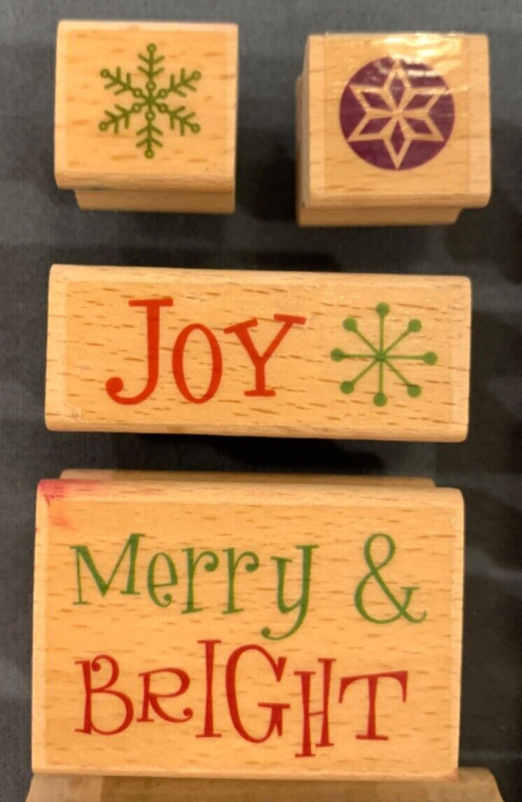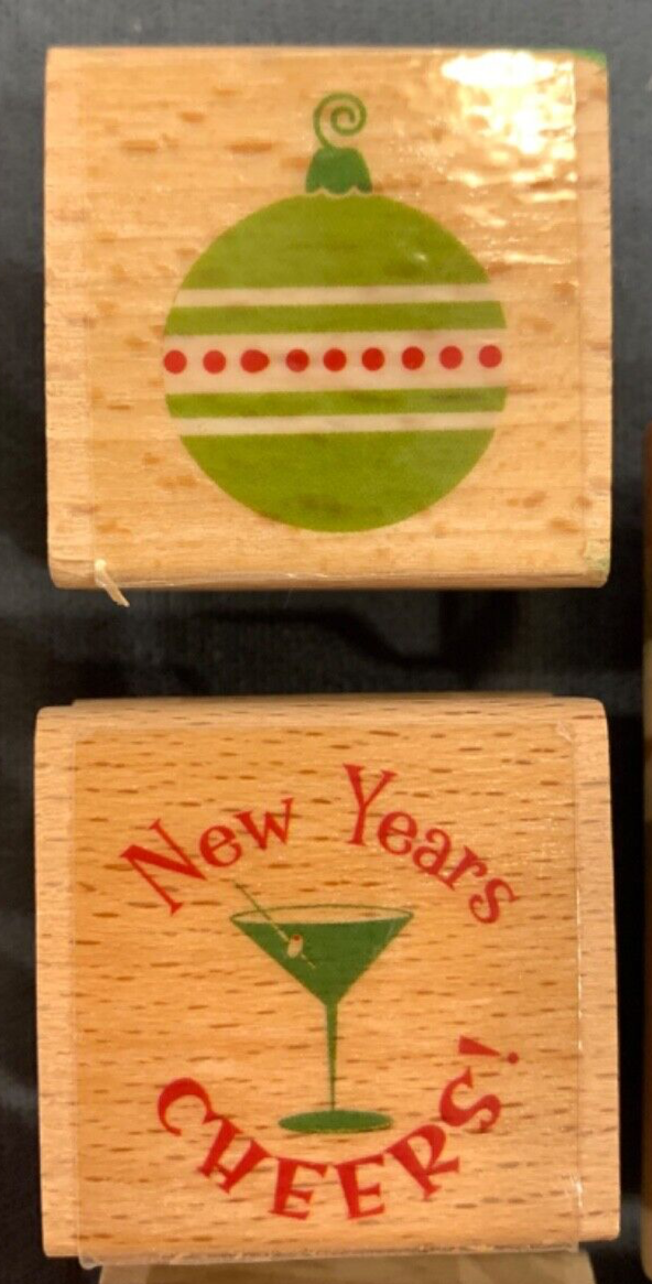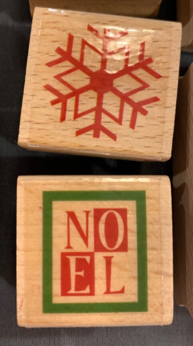 $ 8.959 Wood-Mounted Christmas Rubber Stamps - Santa Snowman Trees Wreath Holiday Designs
