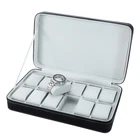 Watch box materials:PU leather and flannelette 12 slots watch case size:approx 13'' x 7.8'' x 3" Watch jewelry display cases sturdy and secure zip lock The chain closure design makes it easy to use and portable for travel and outdoors The zipped watch box and flannel lining will keeps watch and other jewelry away from dust,fingerprints,scratches,ect