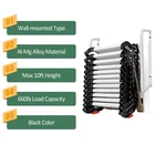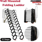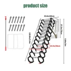 Ideal Height: It has a total of 12 steps, with a maximum vertical height of 11.8ft. The height between steps is ideal (8.66-9.84 in), and there are not many steps, making it easy to get up and down the ladder. Space-saving: The attic ladder adopts a retractable structure, which can be folded when not in use, reducing the occupied space and helping to preserve more room for activities. Easy to Install: This wall-mounted ladder is easy to install. You only need to follow the simple steps shown in the instructions and install it directly on the vertical solid wall. It can be put into use soon. High-quality Material: This ladder is made of high-quality titanium magnesium alloy with wear-resistant,and is more durable than ordinary steel. Aluminum rivets are not easy to rust, so they can hold the ladder stably. These materials improve the quality and extend the service life of our attic stair. Excellent Load-bearing Capacity: The titanium magnesium alloy ladder, PVC base and thickened 1.18" pedals make the ladder can load a maximum of about 660 lbs. It can withstand the weight of most people or objects and is safer to use. Strong Stability: S bent skeletons, reinforcement rivets, and a triangular structure formed by unfolding the frame boast strong support to reduce the vibration of going up and down the ladder, which can effectively protect your safety. Package Include: 1 x Wall Mounted Folding Ladder 1 x Pull Rod 2 x Armrests Specifications Type: Wall-Mounted, Collapsible & Extensible Ground Angle: 60 degree Material: Ti-Mg Alloy Steps Quantity: 12 Steps Step Size: 37.5cm x 13.5cm / 14.7 In x 5.3 In Max Height: 3 M / 11.8 Ft Max Load : 660 Lbs Wall Fixing Frame Size: 70cm x 60cm / 27.5 In x 23.6 In Weight: 87 Lbs