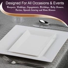 FANCY AND ELEGANT DESIGN – These rectangle white plastic dessert plates add sophistication to weddings, birthdays, and all events. Perfect for serving salads, appetizers, or cakes with style. SERVES 120 GUESTS – This set includes 120 plastic plates, perfect for large gatherings. These party plates make hosting easy with enough dessert plates for every guest. DURABLE AND HEAVY-DUTY – Crafted from premium materials, these plates are disposable yet sturdy enough to handle heavy portions. Say goodbye to flimsy, low-quality plastic plates! CONVENIENT AND DISPOSABLE – Save time and effort with these disposable plates. Enjoy your party without worrying about dishwashing – just toss them after use! PERFECT FOR ALL OCCASIONS – Ideal for weddings, birthdays, and parties, these plastic plates for party settings bring elegance and convenience to your table.