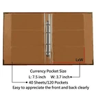 CAPACITY & SIZE: 40 Sheets, 3 pockets per currency storage page(both sides can be seen), holds 120 paper money. Banknote pocket size: 7.5x3.7 inch, album cover: 12x9.5x1.6 inch EXCELLENT PROTECTION: PU leather cover, eco-friendly transparent PP pages, smooth touch and protect currency well, good perspective effect, sturdy and durable, even at low temperatures, paper money collection book does't become brittle or hard PAGE PROTECT: High transparency thickened pages, keeps currency like new for a long time, an ideal way for collector to display, storage and protecting DESIGN: Integrated mechanical ring-type metal page holder - add or remove the inner pages easily. Pages with high transparency - Easy to view and appreciate the front and back clearly. The design of details, buttons, metal edge, cover, pattern and internal panel are retro, generous and elegant. A meaningful gift for collectors or friends who like to collect currency/paper money/bills/banknote/tickets GUARANTEE: If you have any question, please contact us, we will solve them in time for you, we are always doing our best to provide better products and service to our customers