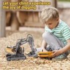 Advantage: 1. Made of high-quality ABS material, with metal shovel ,non-toxic, odorless, safe and durable. 2. Flexible alloy excavator bucket is strong, wear-resistant and impact resistant. It can move sandstone, stone and so on. 3. 2.4GHz frequency provides further RC distance and more accurate operation, with excellent anti-interference performance. 4. High simulation music and LED light functions add more fun when playing. 5. 680 ° rotation enables it to move object in different directions. 6. Powerful and flexible arms and buckets can be moved to load or unload soil, sand or anything else. 7. Two tracks provide strong traction and durability. 8. Easy to operate and great gifts for children. Specification Product material: plastic + metal + electronic components (alloy version) Product color: yellow gray Number of channels respectively: 11 channels Product frequency: 2.4G Body battery voltage: 3.7V Applicable age: 4~8 years old + Body battery charging time: 120 minutes/battery Product life time: about 40 minutes Remote control batteries: 2 AA batteries (not included) Charging plug type: USB charging cable Product remote control distance: about 30 meters Alloy excavator product size: 28 * 10.5 * 28CM Alloy excavator Body battery capacity: 1200mAh, 2 lithium batteries included Function: Alloy excavator remote control mode: left hand forward and backward/table left and right turn, right hand left and right turn/bucket up and down. Alloy excavator product features: 1.Simulation modeling, bright colors, 1:20 size, suitable for indoor and outdoor play, more suitable for multi-site control; 2.2.4G signal without interference, remote control distance; 3.Forward, backward, left turn, right turn, digging arm can be excavated and unloaded, the worktable can be rotated by 680 degrees remote control, one-key demonstration, lighting, sound effects. One set contains: 1 x Car 1 x Remote control 1 x Instruction manual 2 x batteries 1 x Charging cable 1 x Screwdriver