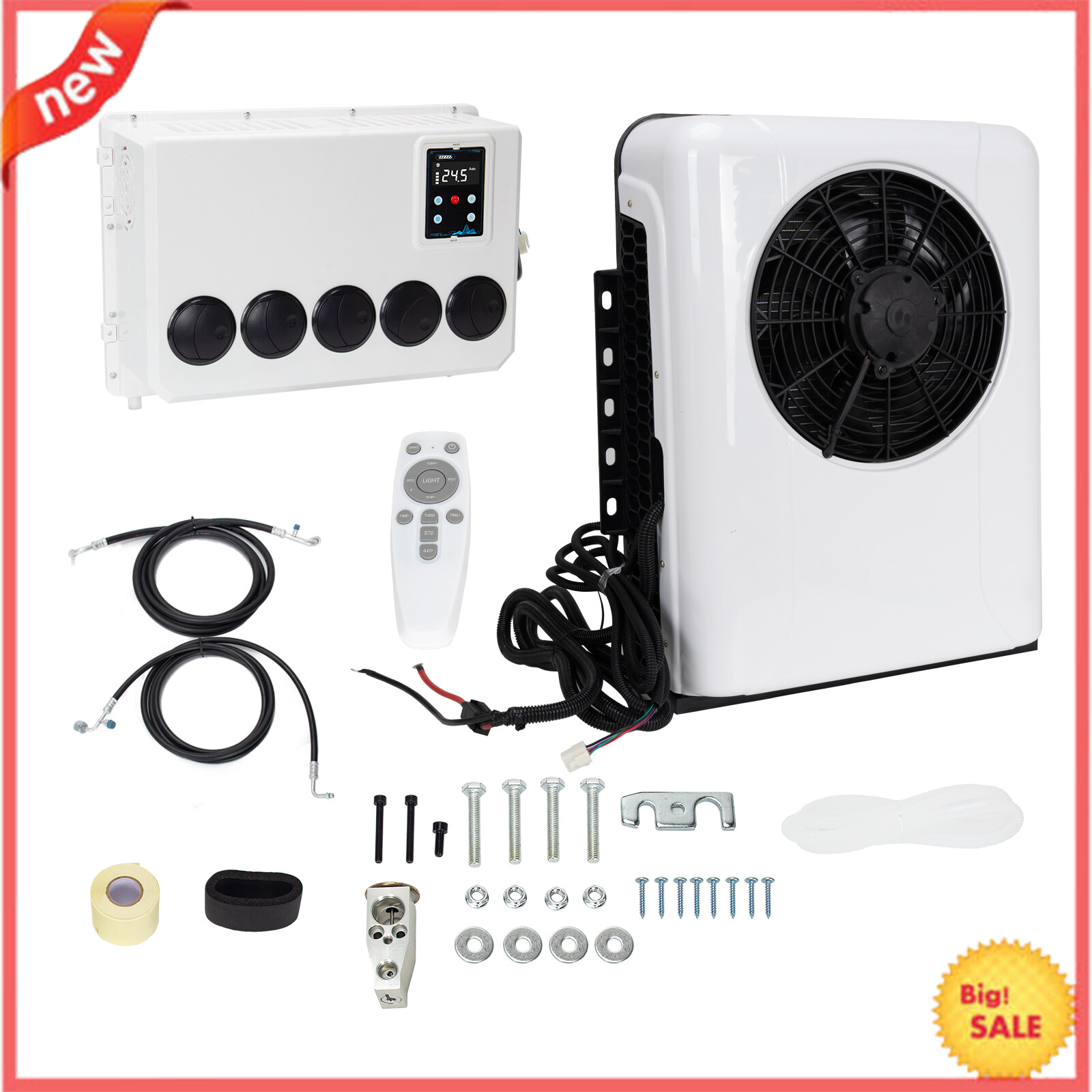 Note: The Actual Color Of The Product May Differ Slightly From The Color Displayed On Our Website. This May Be Due To Factors Such As The Angle Of Product Photography, Lighting, And Display Settings Specification: Type: Split AC Air Conditioner Cooling capacity: 12000 BTU Certification: ISO/CE Controller Type: Remote Control Volt: 12V Current: 60-80A Rated Power: 960W Refrigerant: R134A (600g) Cooling capacity: 1000W-3000W (3400-10238BTU) Oil: 90ml-120ml POE68 Noise: 70db Function: Air Cooling Material: Aluminum,Metal,Steel Mounting Style: Screw-On Outdoor Unit Size:L:660 * W:490 * H:210 (Mm) / L:26 X W:19 X H:8 - Inches Indoor Unit Size:L:495 * W:355 * H:190 (Mm) / L:19.5 X W:14 X H:7.5 - Inches Control Method: Intelligent Drive Drive Mode: Independent OE/OEM Part Number: Semi Truck air conditioner 12V, 12V air conditioner, 12V Truck air conditioner Features: High Quality, Durable, Easy Installation, Low Noise, Energy Saving, Environmental Protection, Fast Cooling, 100% Leak Tested Fitment: Universal Item Included: 1Set Electric Air Conditioner Features: 【12V air conditioner parameters】: 12v air conditioner Rated voltage: 12V, rated current: 60-80A, power: 960W, cooling capacity: 1000W-3000W, inner unit size: L:495 * W:355 * H:190 (Mm) / L:19.5 X W:14 X H:7.5 - Inches, outer unit size: L:660 * W:490 * H:210 (Mm) / L:26 X W:19 X H:8 - Inches, please You carefully compare whether the parameters meet your needs. 【Energy saving】: This RV air conditioner has a large layout freedom, and the inner unit is small in size. It can be installed according to your needs. The air conditioner can be turned on after parking, does not consume gasoline, and has low noise. When you are parking or waiting, use 480 AH car battery, can be used for 6-8 hours, does not require fuel to drive at all, saves a lot of fuel costs, and can still enjoy a comfortable, quiet and cool environment in hot summer. 【Wide range of applications】: Our 12V air conditioner is suitable for all kinds of models, RVs, heavy trucks, light trucks, engineering vehicles, forklifts, cranes, oil to electricity, etc. All vehicles are suitable for installing our 12V air conditioner, in the hot summer Provide you with an environment that is both environmentally friendly and economical and cool and comfortable. 【High quality material】: This truck air conditioner has a beautiful appearance and is made of high-quality steel plate, which is strong and durable, and this DC electric air conditioner adopts a high-efficiency electric scroll compressor, which is anti-vibration, high energy efficiency, low noise, and can keep cool even when the engine is off. 【Quality Assurance】: Our Parking air conditioner are of high quality. Helps drivers get enough rest and improves road safety, We include installation instructions, If you have any questions during installation and use, you can contact us at any time, and we will provide solutions and solutions that satisfy you. Package Include: 1 Set Air Conditioner