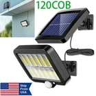 Product Descrip tion 【 Two Installation Ways 】 With integrated and separated two installation ways. (The separated installation makes it possible to install the LED lamp panel in a sunless place where you need light , and the solar panel can be installed at a distance where it can charge more sunlight.) 【 3 Light Modes 】 Motion Sensor Light come with 3 lighting modes: Mode 1. automatically on with full brightness when motion detected and off after 30 seconds; Mode 2. automatically on with full Brightness when motion detected and change to dim brightness after 30 seconds; Mode 3. always on with dim Brightness in dark. 【 PIR Sensitive Motion Sensor 】 Solar light outdoor absorb sunlight at daytime and turn on automatically at night when motion is detected.The range of motion sensor is 26.25ft(120COB) at up to 120°sensing angle and stay on for approx 30s. 【 IP65 Waterproof 】 Made of heatproof PC plastic steel + Anti-UV Material that it can withstand all weather that it cannot easily infiltrate inside the lamp body. 【 Polysilicon Solar Panel 】 Waterproof solar security light have both Polysilicon solar panel and rechargeable lithium battery (3.7v,2400mAh,120COB). Higher solar efficiency up to 17% that can get charged with 6-8 hours absorbing sunlight and will last up to 8-10 hours after completely charged. 【Brighter Solar Powered LED Lighting】With 120 upgraded COB LED Lights. 【 Easy Installation & Setting 】 Our street light can be mounted directly on the wall and pole. 【 Widly Used 】 The solar power lights is ideal for gardens, swimming pools, fences, patios, decks, yard, driveways,stairs. Specificat ions : Solar panels: Polycrystalline Silicon solar panels Battery: 3.7V 2400mAh lithium battery--120COB; Angle of the sensor: 120° Maximum Induction distance: 26.25ft(120COB) Brightness: 260LM -- 120COB Quantity of LED: 120COB Voltage: 5V Waterproof rating: IP65 Lighting Range: 40㎡ Material: ABS Induction Distance: 3-5m (6.56-16.4inch) Package Inclu ded : 1x Solar Street Light