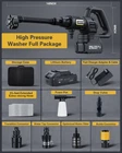 [Unmatched Strong Portable Power Washer Cordless] Cordless Pressure Washer delivers an impressive cleaning power. Our high pressure washer can tackle even the toughest dirt with ease, making the cordless power washer perfect for any cleaning task. [High-Capacity Battery] Equipped with advanced 21V 4.0Ah battery, our car pressure washer ensures faster charging times, longer runtime and consistent power output. Enjoy up to 40 minutes of uninterrupted cleaning with our battery powered pressure washer. [Versatile 6-in-1 Nozzle & Foam Pot] Our nozzle offers a range of spray patterns, including 0°, 15°, 25°, 40°, jet, showering, versatile for all scenarios. Other than a good car washer, it's also good for foam cleaning, bikes, window, wall, floor, etc. [Draw Water from Anywhere] Our car wash pressure washer machine includes all connectors for drawing water. The faucet connector draws from tap. The weighted filter absorbs water from buckets & pools easily. The bottle connector takes water from bottle. [Easy carry & Install] Weighed 3.2 lbs, our portable handheld pressure washer is designed for easy carry. With detailed instruction & quick-connect ports, our mini small battery operated power washer allows for fast and easy setup. hidrolavadora portatil [What is included] Pressure Washer, 4.0Ah Battery, Fast Charger, 6-in-1 Nozzle, Foam Pot, 23FT Extended Extra-strong Hose, Faucet Connector, Stop Valve, Weighted Filter, Bottle Connector, Bottle Straw, Storage Case, User Manual, 24-hour response service.