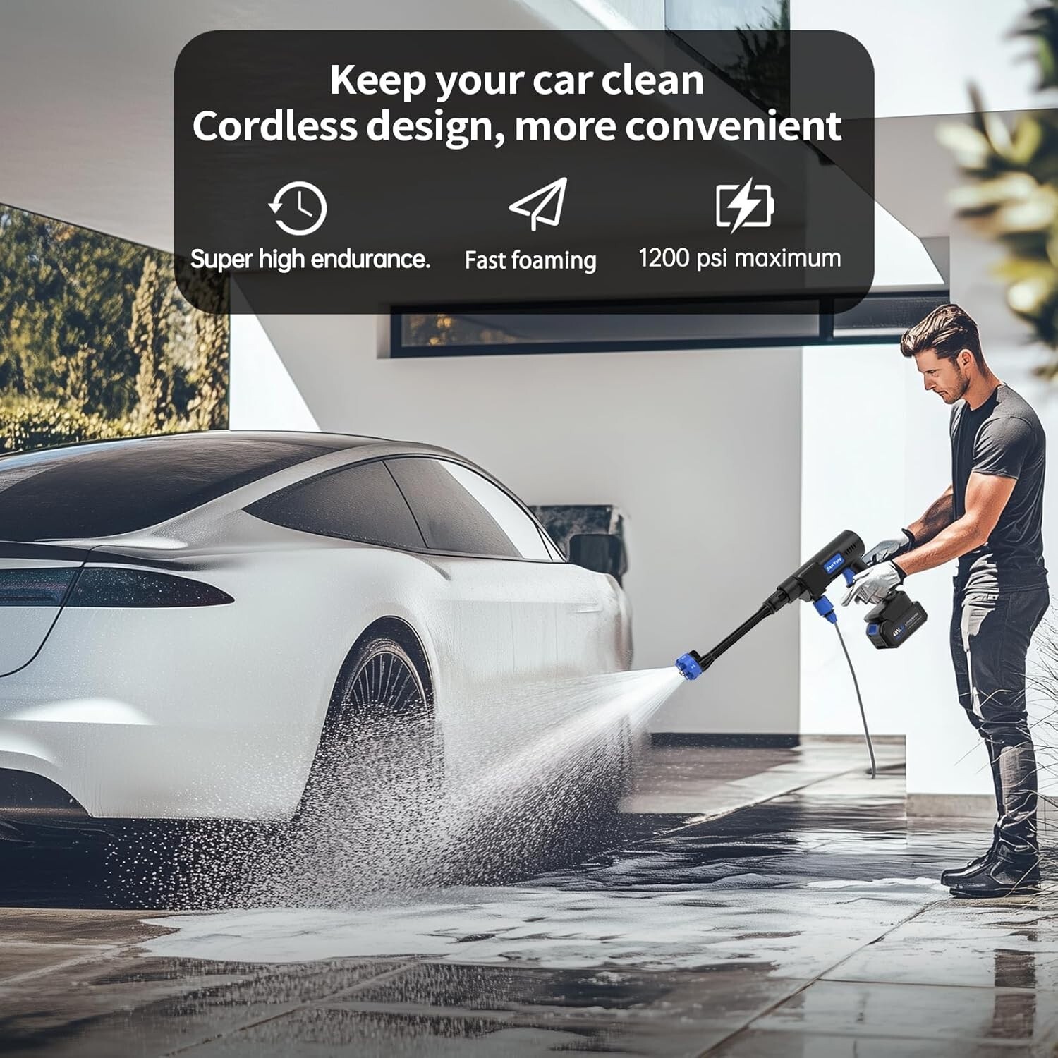 This cordless pressure washer is a game-changer! The 1200PSI power blasts away dirt effortlessly, and the 6-in-1 nozzle makes it super versatile—perfect for cars, fences, or even watering plants. Love how quiet it is while still delivering strong performance. The portability is a huge plus—no cords or hassle. Highly recommend for quick, efficient cleaning!