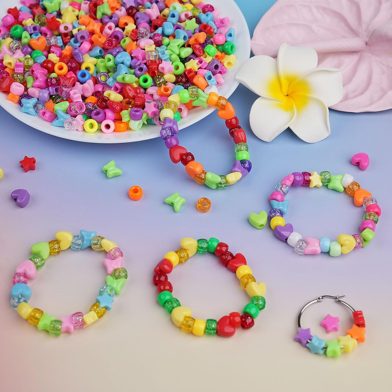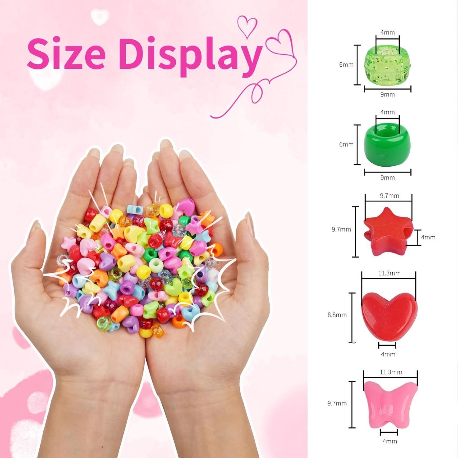 【Bead Assortments and Size】You will receive 1200pcs pony beads bulk, including heart beads, five-pointed stars, butterfly beads, opaque colored pony beads and glitter pony beads. With multi assorted colors and designs, which can meet the needs of different handicraft creations. These beads have exquisite packaging, easy to access. They are made with the common size, the hole is all the same, 4mm large hole is ideal for stringing, very easy to match and use 【A Great Choice for Crafts and Gifts】These colored beads are suitable for a huge variety of craft projects. They are perfect for jewelry making, DIY name bracelets and friendship bracelets, necklaces, earrings, it also can be used for various party decorations, key chains, phone chains, wind chimes, hair accessories beading, etc. These are perfect as a small gift for your family, lovers, your best friends, classmates, colleagues, etc. In addition, it can be used for various festival decorations, birthday party, music festival, etc 【Good Learning Tool】These colored shaped pony beads are a great tool for teachers and parents. They are widely used in the home or community centers, there are many functions. They can be used to learn to sort colors, weigh and count, exercise fingers and develop the sense of aesthetic, various shapes and colors can better stimulate creativity 【Enjoy a Happy DIY Time】With a sufficient number of beads in each pack, you can share with friends to make friendship bracelets or handicrafts, which can be preserved for a long time, witnessing the happy DIY time and retaining good memories, this will be a very meaningful thing 【Quality Guaranteed】These pony beads are made of good-quality colored plastic, well made with a smooth surface, sturdy, lightweight and durable, not easy to break and fade, they can be used repeatedly for a long time. If you have any problems with your purchase, please feel free to contact us, we will provide you nice service to meet your satisfaction Product Description Share the Good We insist on the idea of conveying beauty to more people, carefully selecting high-quality plastics to make pony beads to better meet your use of experience. Bead Assortments and Size You will receive 1200pcs good-quality colored plastic pony beads bulk, with multi assorted colors and designs, including heart beads, five-pointed stars, butterfly beads, opaque colored pony beads and glitter pony beads. With multi assorted colors and designs, which can meet the needs of different handicraft creations. Each colored pony bead beads for jewelry making is designed with a large hole, which is ideal for stringing and they are convenient for assorting with letter beads, flower beads, hexagon beads, etc. They are suitable for all kinds of crafts, jewelry makings, hair braids. Assorted Colors and High Quality These assorted colors beads are cute in shape, full and bright in color, very textured, the whole body is made of high quality plastic, molded in one piece. They are well made with a smooth surface, sturdy, lightweight and durable, not easy to break and fade, they are the perfect choice for handicrafts. High-quality beads can better show your excellent taste. The Perfect Choice for Handmade Full colors and shapes can make your handicrafts more vivid and increase your taste for fashion. In addition, bright colors can add vitality to life. The process of making handicrafts makes your fingers more flexible, enables you to concentrate better and relaxes your body and brain. The smooth exterior of the beads provides better protection for hands. The large 4mm hole diameter, greatly reduces the difficulty of use, in the process of handmade DIY easily gain the confidence of creation, better cultivate creativity and imagination, improve aesthetic ability. Exquisite Packaging and Widely Used These beads have exquisite packaging, easy to access, the width of the jar storing beads is 3.35inch, the height is 4.33inch. They are perfect for jewelry making, DIY name bracelets and friendship bracelets, necklaces, earrings, it also can be used for various festival decorations, key chains, phone chains, wind chimes, hair accessories beading, etc. A Great Choice for Gifts Use your fingers and imagination to make some small gifts for your friends. Whenever your friends see the small gift you sent,they will remind of you, as if you are always with them, better increase the feelings between each other, which is such a meaningful thing. Move your hands, play the imagination, experience the fun of DIY.