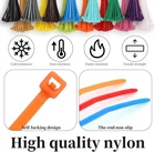 【Multi Color Ties】The packaging includes 12 colors of zip ties, 100 of each color, totaling 1200. Different colors are beneficial for distinguishing cable combinations and organizing cables for different purposes 【Size】4-inch (100 x 2.5mm) nylon tie is perfect for home organizing. Suitable for small and medium-sized wire harnesses or cables, making indoor space cleaner and more orderly 【Durable and Sturdy】Our colored zipper straps are made of sturdy nylon material and can work well in sunlight. It has strong bearing capacity, anti-aging, acid resistance, corrosion resistance, durability and other characteristics, and can be used within the range of - 30 ℃ to 85 ℃ (static temperature) 【Self Locking Design】Using high-precision molds to produce neat zipper straps without excess burrs, it can firmly lock the wires to prevent slipping. Oval lock head can prevent being hooked by rough surfaces, and self-locking design makes it easy to use