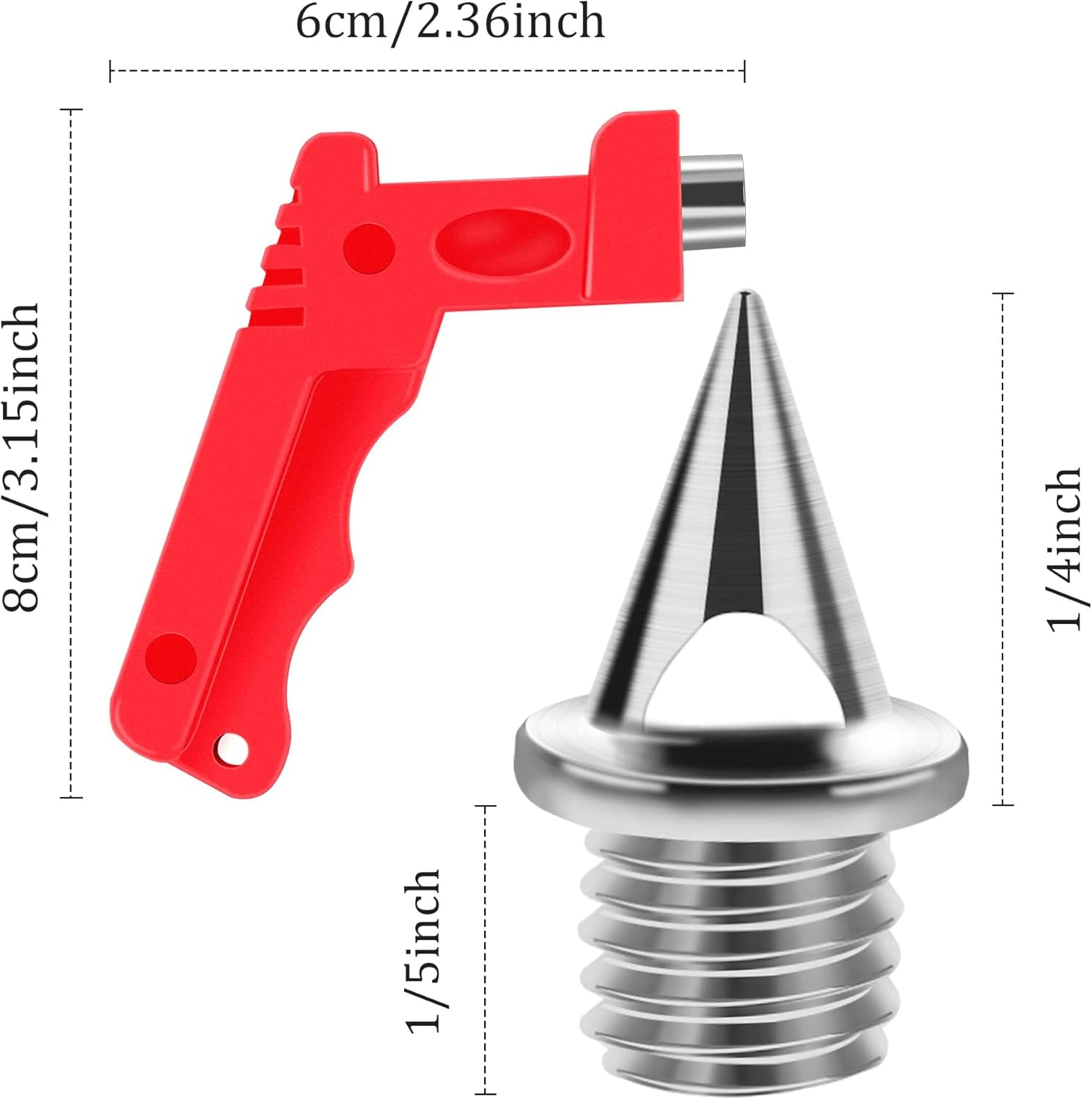 What You Get: Package includes 120 pieces silver track shoe spikes with 1pcs spike wrench, convenient for you to replace your shoe spikes. There are enough quantity for your daily use. Quality Material: These shoe spikes replacement are made of quality hard steel, durable and rust-resist and anti-corrode, ensure you to use for a long time.Easy to match with most of the track shoes, improve your running balance of traction, flexibility and speed. Easy to Use & Replace Spikes: The package includes a spike wrench. It is very easy for you to screw the pyramid track spikes into the shoes, convenient to replace the spikes. Ideal for athletic tracks, field and cross country surfaces. Size: 6.35 mm (1/4 inch) in length, tapered and needle-shaped, which increases friction between the sole and the ground and prevents skidding,especially suit for track sprints, long jump,running, outdoor sports activities. Improve Running: If you like running, climbing, or you are a golf sports enthusiast, these golf spikes will help you a lot. This pyramid spikes will add the friction between the shoe sole and ground, thus can resist skid and improve your running speed. Product Description Steel Track Spikes 120 pcs golf spikes + 1pcs spike wrench + 1pcs plastic box The golf spikes are available in a variety of colors. Suitable size. 1、Find the broken spike. 2、Take it out with the spike wrench. 3、Install the new track spikes with the spike wrench. 4、This pair of shoes can be reused again. These shoe spikes replacemen are made of quality hard steel, durable and rust-resist and anti-corrode, ensure you to use for a long time.Easy to match with most of the track shoes, improve your running balance of traction, flexibility and speed. These track spikes 1/4inch can increase the friction between the shoe sole and ground, resist skid and improve your running balance of traction, flexibility and speed for track sprints, long jump, running.
