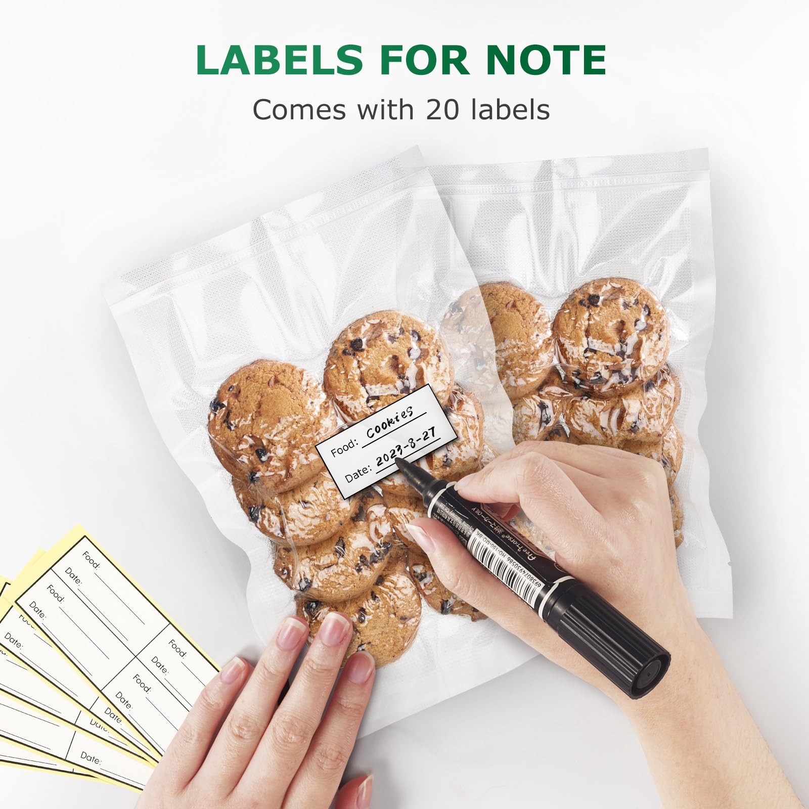 Our mission is food saving and making smart food storage more accessible to everyone. We are dedicated to providing absolute vacuum that ensures your food stays fresher, longer. vacuum sealer bags are made of BPA-free professinal material, with high quality and favorable price. Save to use for raw or cooked food, your perfect choice to preserve your food. Key Feature of Bags: Professional vacuum sealing ・Dot textured design make it efficient for vacuuming and sealing. ・Air and water proof material prevents leaking and freezer burn. User-friendly design ・Convenient Pumping bags box allows to easily take out the vacuum bags. ・The included stickers allow you to mark and organize the sealed vacuum bag. Safe & Healthy ・We pledge to keep your food safe and are committed to making food-safe bags that are free of BPA, phthalates and other plasticizers. ・Can be microwaved, frozen, re-used, washed, boiled and dishwasher safe. Great for sous vide cooking. Waste less & Enjoy more ・No rolls to cut. A money. Premade storage bags for food cost less, inch-per-inch, than rolls and take less time to use! DURABLE and WELL-SEALED: Reusable vacuum seal bags for food which resist bones from piercing and improves sealing performance for longer food storage. Keeps food fresh, flavorful and nutritious. Eliminates dehydration and freezer burns TIDY and CONVENIENT: Innovative design of the opening structure makes access easier. Keep bags away from dust and kitchen grease to keep the inside clean UNIVERSAL and PRE-CUT: Compatible with all models of vacuum sealers (better with food sealer machines). 8"×12" quart size pre-cut freezer bags are ready-to-use, saving time to prepare make-ahead meals, and portion bulk items in the freezer EASY TO USE: Included labels keep track of food storage time and food category, improving efficiency and avoiding wastage. Easy-tear slit allows to tear the bag directly to take out food BPA FREE: Food storage bags range up to 110°C / 230°F, can be used in the microwave, refrigerator freezer, boiling. Perfect for meal preparation, food storage, freezer storage, gardening, herbs, and as sous-vide bags