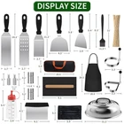 Whether you're grilling at home, camping, or enjoying an RV travel adventure, our griddle accessories ensure you have all the tools you need for a successful outdoor cooking experience! 120 pcs practical griddle accessories kit includes Long griddle spatula, Short griddle spatula, Slotted spatula, Slant Edge Scraper,basting cover,Grill Turner,Burger Press, exclusive apron, Griddle Chopper,Basting Brush, 2 Squeeze Bottle, 2 Egg Rings, 2 Spice Shakers,2 corn fork,100pcs bamboo skewers,Cleaning Brush,high-quality storage bag and a beautiful package box Premium Quality: Our 120pcs Griddle Accessories Kit is crafted with heavy gauge stainless steel, ensuring durability and long-lasting performance. You can trust that our BPA-free, rust-resistant, and durable tools won't crack or melt with long-term use. Say goodbye to flimsy tools that bend or break easily during outdoor grilling sessions. Hassle-Free Cleaning& Storage & Carry: With its easy-to-clean feature and dishwasher-safe materials, this kit takes the hassle out of post-grilling cleanup. Each tool can be placed in an orderly manner and better protected in the compact storage bag. PROFESSIONAL GRIDDLE TOOLS:This set of grill tools with grill scraper, spatula and grease bottle will help you grill as easily as a restaurant chef even if you are a beginner griller. It will make everyone happy at your BBQ, weeknight party or everyday meal! Perfect Choice: This practical barbecue tools set with beautifully designed package box is ideal accord choice for Fathers Day, Thanksgiving or Christmas。Whether for a passionate grilling enthusiast or a camping aficionado, this comprehensive accessories kit makes for an ideal accord. All your patio, outdoor and camping BBQ's, weekend parties or everyday dining needs can be met.Please clean the tool promptly after use, and do not leave any water stains on the tool to avoid damage.