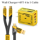 arameters: Product material: ABS + Aluminum alloy Length: 1.2m(1%-1.5% discrepancy ) Input interface: TYPE-C / USB Output interface: USB TO / For IOS Working voltage: 5V-20V Power: Downward with 65W, IOS27W Features: 1. [Multi Protocol Adaptation]: Used on multiple device models, supporting iPhone/MacBook/iWatch/Airpod, Charging Adapter, Smart Watch, Headphone, Smartphone 2. [Fast Charging]: When used with the fast charging protocol charging head, it can be charged to 80% in 40 minutes. It supports IOS27W fast charging and For Android 65W fast charging. It also suport Your own original fast chargine head too. 3. [Multi Charging Cable]: The USB C cable can be used to charge multiple devices at the same time. It has three different interfaces: USB A to C, USB C to C, USB C to L, and USB A to L. You can use it to charge your iPhone, iPad, MacBook, Android phones, and other devices. 4. [Bold Wire Core]: The 4 in 1 USB type C cable is made of flat braided nylon fiber, which is more flexible, and tangle-free than traditional cables. It is also anti-winding, which can effectively prevent the cable from tangling and knotting, and save you a lot of time and effort. 5. [High Speed Transmission] 480Mbps/S transmission speed, charging/data transmission synchronized. 6. [with Various Devices] :The USB C cable is with various devices, including the latest iPhone, iPad, MacBook, Android phones, and other devices. Note: 1. Please allow a bit error due to manual measurement. please make sure you do not mind before you bid. 2. The color may have different as the difference display, please understand.