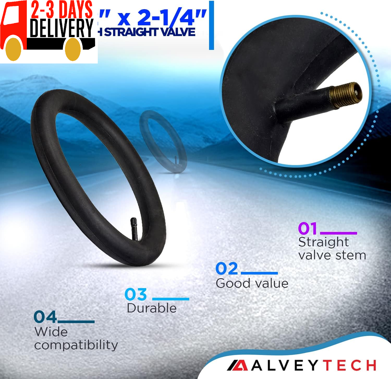 12-1/2" X 2-1/4" Straight Valve Inner Tube - for the Razor Pocket Mod Bella, Betty, Bistro, Blossom, Chrissy, Daisy, Hannah Montana, Kiki and Sweet Pea Replacement Scooter Tubes High Quality – This inner tube is made of high quality rubber and has a straight valve stem Affordable – At our affordable price, why not buy multiple and keep a spare on hand Compatibility – This inner tube fits all versions of the Razor Pocket Mod Manufacturer Part Number – Razor part number: W15130640076 Does your Razor Pocket Mod have a flat tire? If so, then we’ve got the perfect solution to all your scootering woes with our AlveyTech replacement 12-1/2" x 2-1/4" inner tube with straight schrader valve stem for the Razor Pocket Mod. No need to be unhappy about having to put up with a flat. This affordable and reliable inner tube is the perfect fit for the Razor Pocket Mod and will easily get you back on the move in no time. Not only will it fit your scooter, but it may also fit your electric bike! Keep one of these tubes on hand at all times so that when that inevitable flat strikes, you'll be ready. Get your life back in motion quickly and easily with this handy inner tube and make sure it stays that way by stocking up on spares, for you never know when flat tires will happen! Get your Razor Pocket Mod rolling again as soon as possible and add to cart today! MODEL COMPATIBILITY Razor: Pocket Mod Bella; Pocket Mod Betty; Pocket Mod Bistro; Pocket Mod Blossom; Pocket Mod Chrissy; Pocket Mod Daisy; Pocket Mod Hannah Montana; Pocket Mod Kiki; Pocket Mod Sweet Pea; Pocket Mod Vapor. SPECIFICATIONS Tube size: 12-1/2” x 2-1/4” Inside diameter: 8-1/2” Thickness: 3/4” Shipping Fast shipping is very important for us. Our standard US shipping service is FREE. Your order will be shipped within 2-3 business days upon full payment received. Your order will be delivered within 2-3 business days after the handling time. We only ship to the confirmed PayPal address. We reserve the right to cancel any order for any reason at any time. We are not responsible for undeliverable addresses. Returns and payment We offer a 30 days return policy from checkout winning date. We allow only PayPal as payment method FeedBack Your feedback very important to us, after you get your package and you are satisfied with our service please leave us positive feedback If you have any problem with your order / any questions please before leave any type of feedback For any questions, using eBay contact system Please visit our eBay store to check out other items for sale! Thank you for shopping at our store.